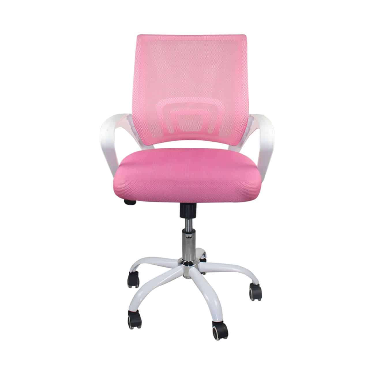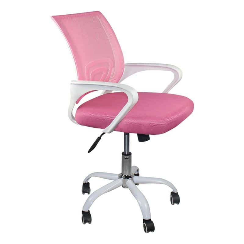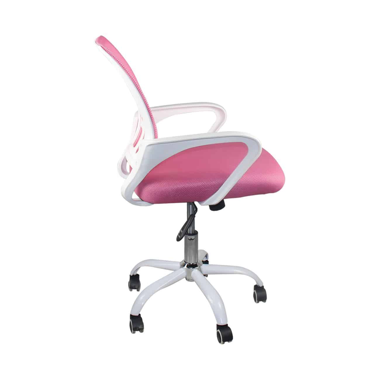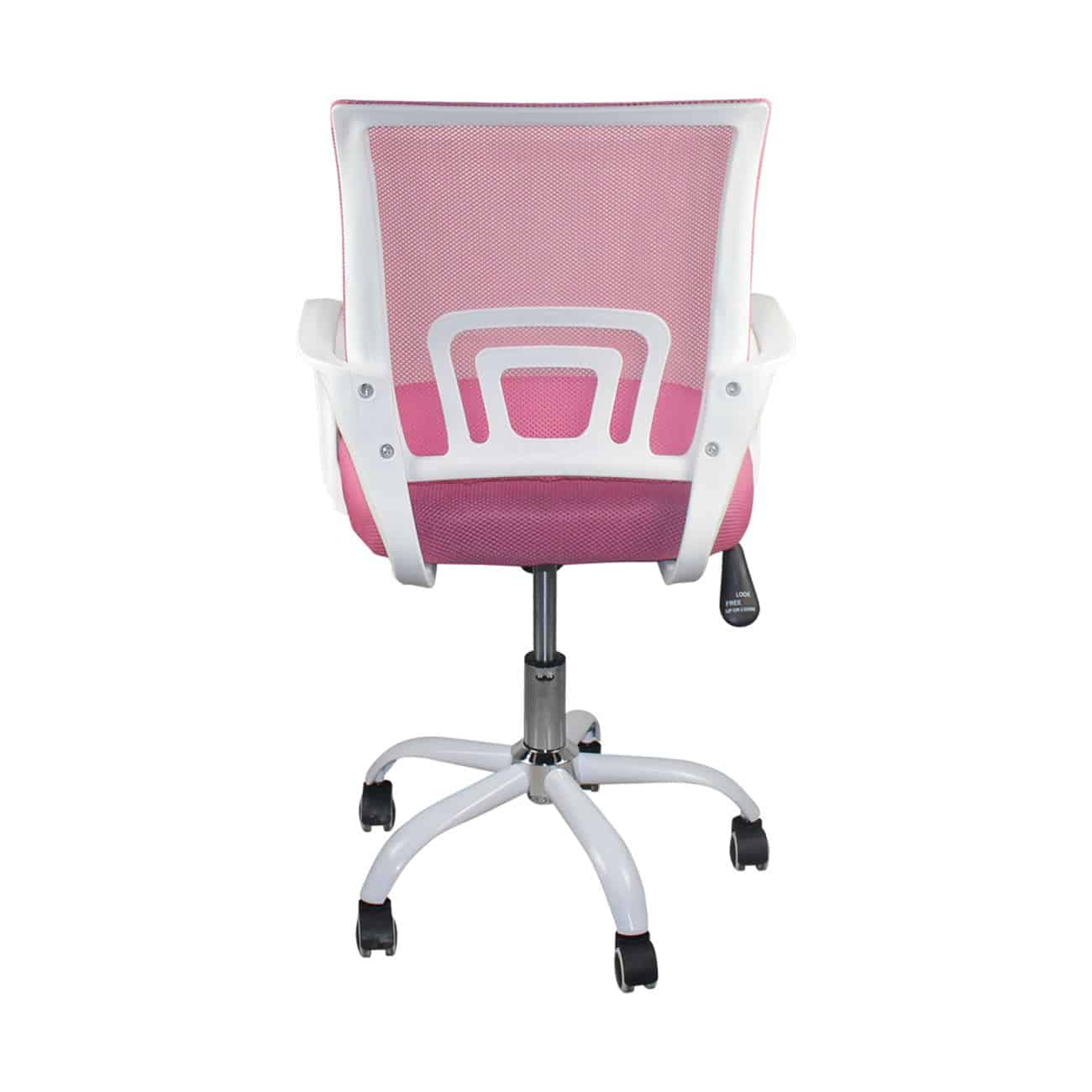 BF2101-SW Πολυθρόνα Γραφείου με Ανάκλιση Άσπρο – Mesh Ροζ 57x53x90/100cm