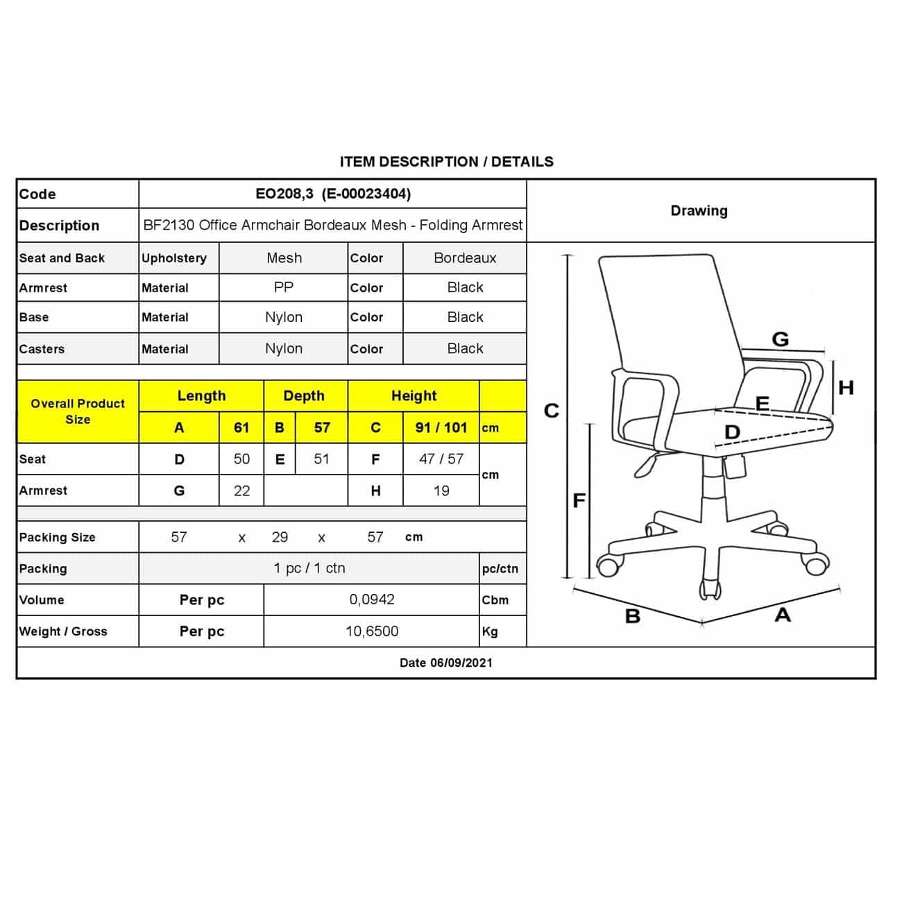 ΕΟ208,3 BF2130 Πολυθρόνα Mesh Μπορντώ