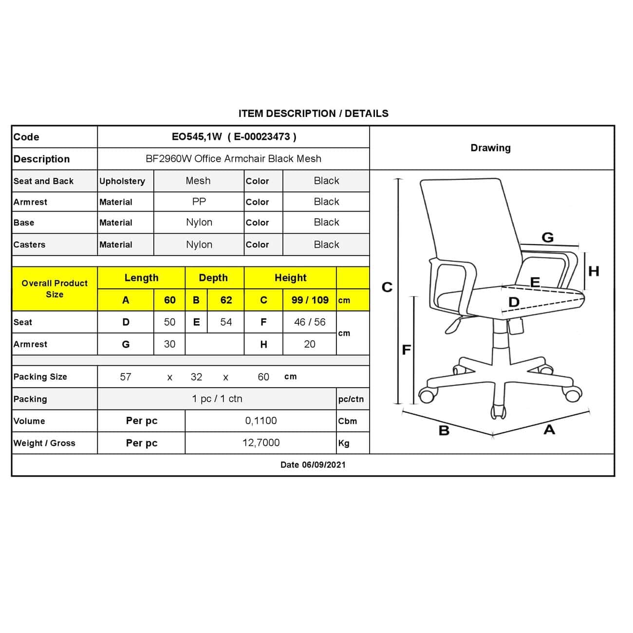 ΕΟ545,1W BF2960W Πολυθρόνα Μαύρο Mesh