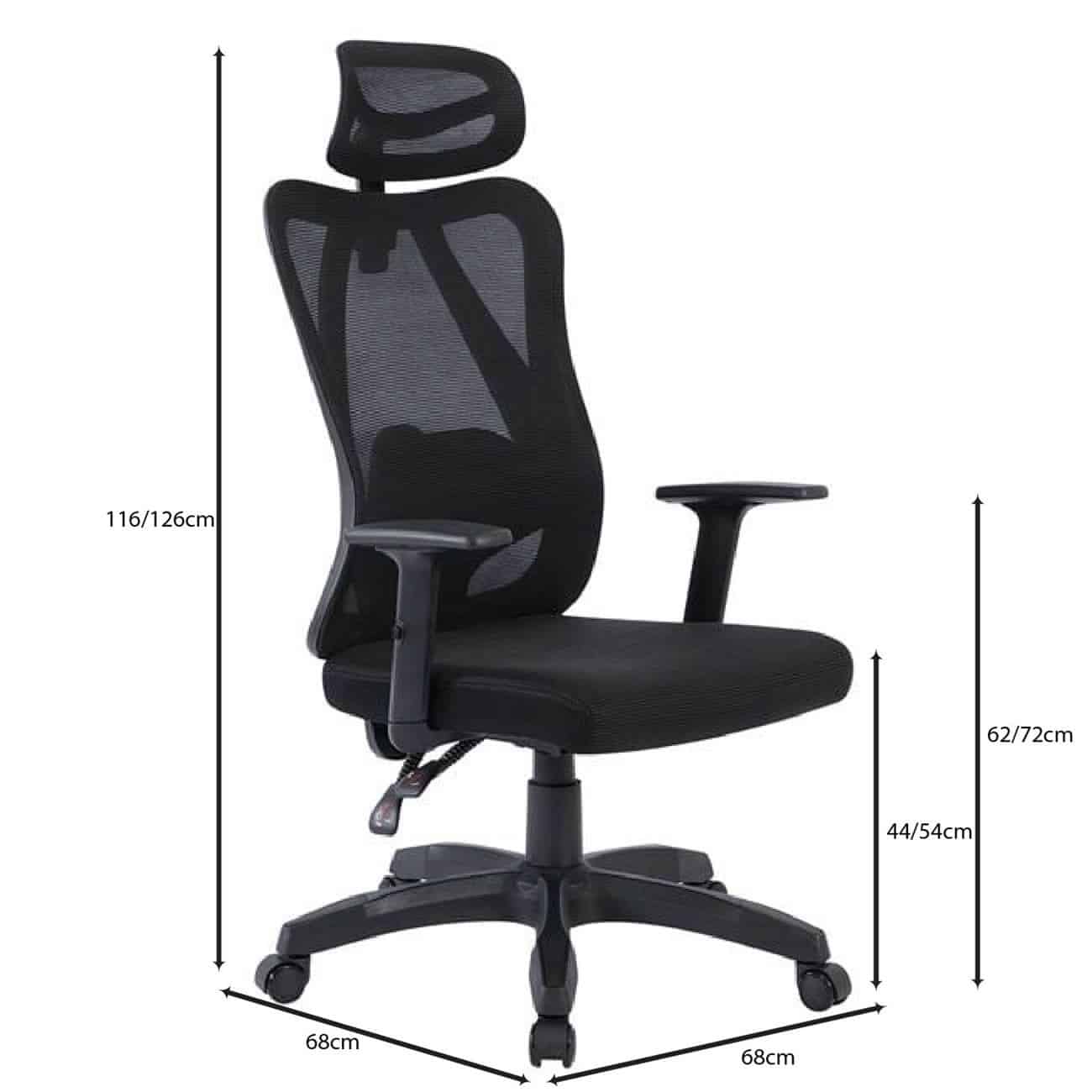BF3750 Πολυθρόνα Γραφείου Διευθυντή, Mesh Μαύρο, Μπράτσα up-down 68x68x116/126cm