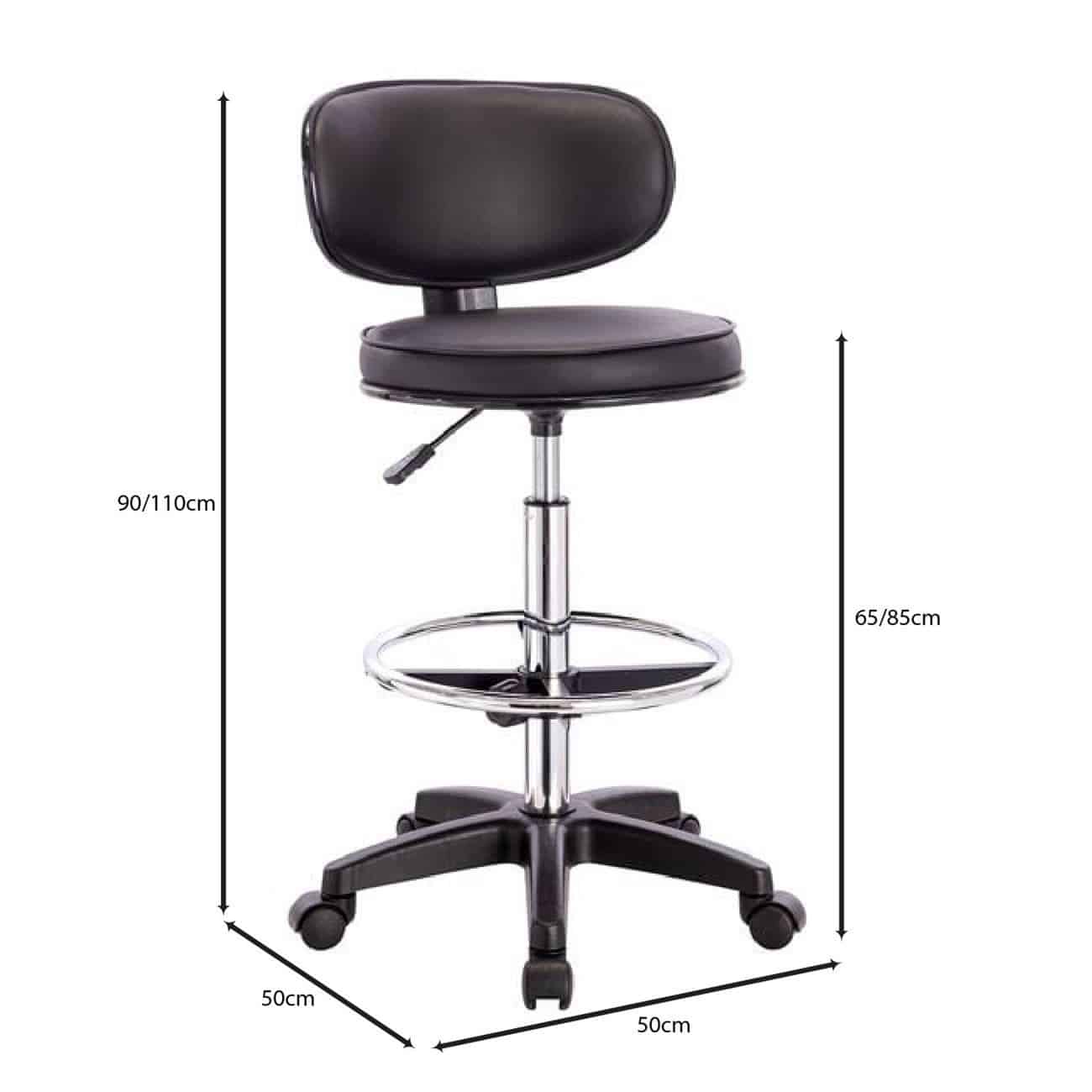 BF406 Σκαμπό Reception-Ταμείου PU Μαύρο, Τροχήλατο, Ρύθμιση Ύψους, Περιστρεφόμενο 50x50x90/110cm