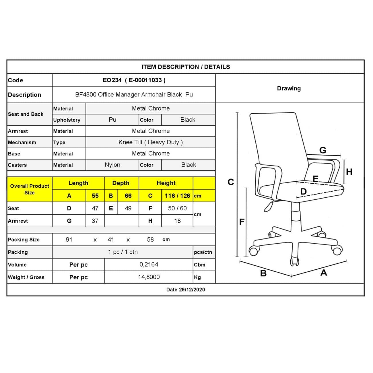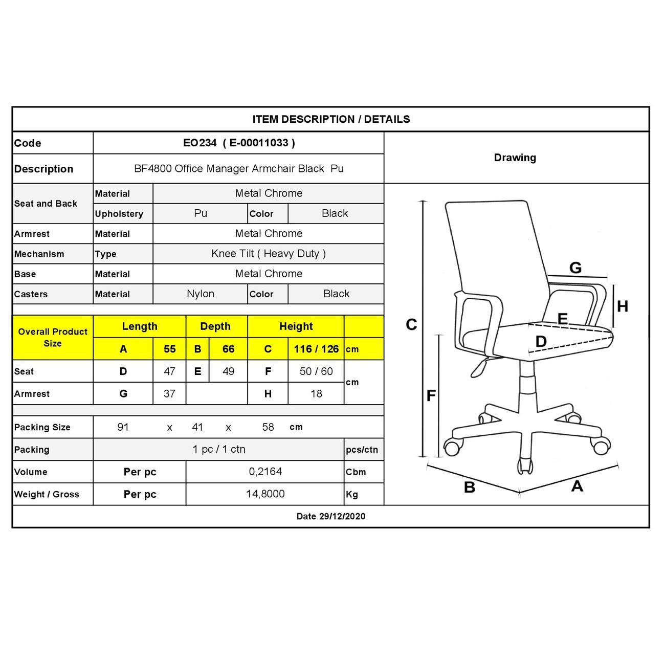 BF4800 Πολυθρόνα Διευθυντή Μέταλλο Χρώμιο – PU Μαύρο 55x66x116/126cm