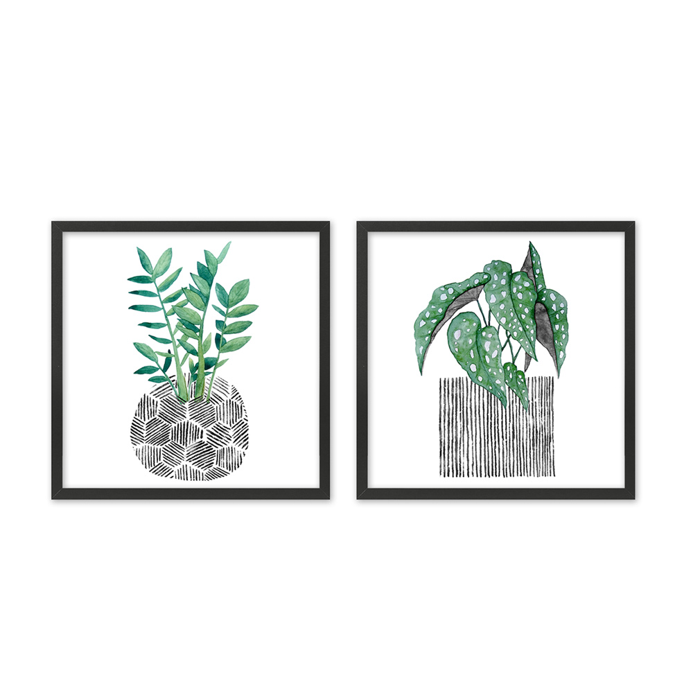 Το σετ πινάκων BILIA απεικονίζει δύο φυτικά μοτίβα σε φυσικούς πράσινους και απαλούς γαλάζιους τόνους, προσφέροντας ηρεμία και δροσιά στον χώρο. Η μαύρη κορνίζα πλαισιώνει καθαρά τις συνθέσεις και προσδίδει μοντέρνα αισθητική. Η ποιότητα της εκτύπωσης αναδεικνύει τις λεπτομέρειες στα φύλλα, ενώ το MDF προσφέρει σταθερότητα. Ιδανικό για σαλόνια, διαδρόμους, υπνοδωμάτια και spa-inspired χώρους.