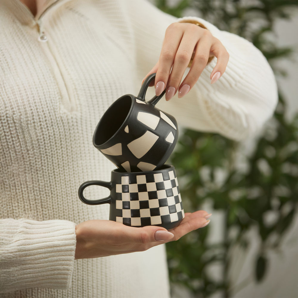 BLEND ΚΟΥΠΑ 8x8x8cm STONEWARE ΜΑΥΡΟ ΛΕΥΚΟ