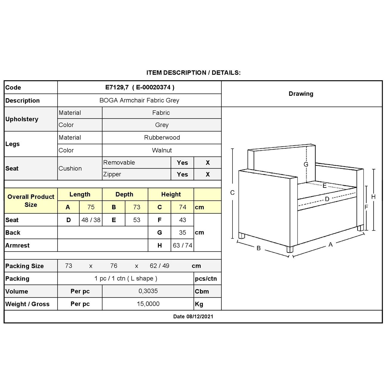BOGA Πολυθρόνα Σαλονιού – Καθιστικού, Ύφασμα Γκρι (Ε-00020374)