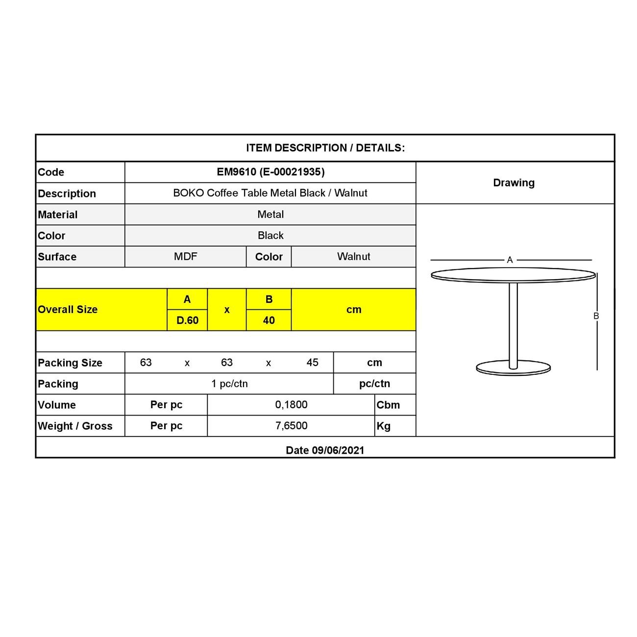 ΕΜ9610 BOKO Τραπ.Σαλονιού Φ60x40cm Μεταλ.Μαύρο/Καρυδί