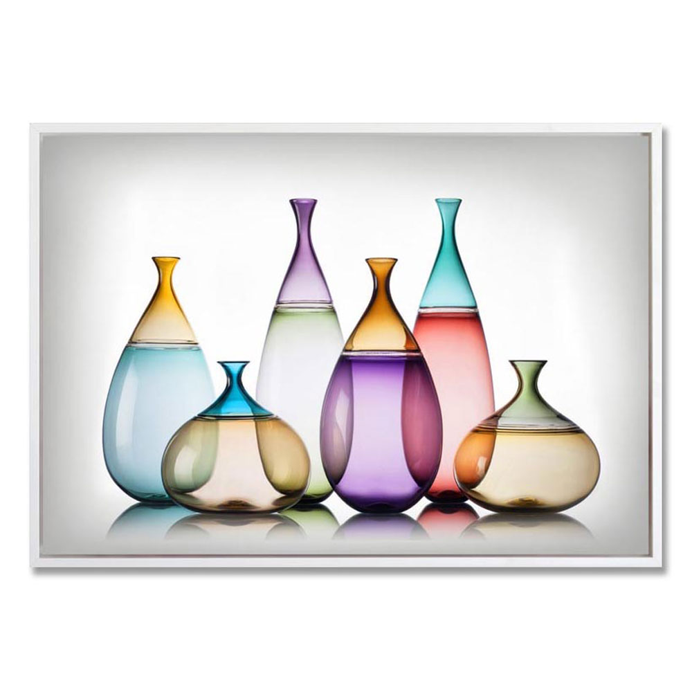 Ο πίνακας BOTLI απεικονίζει μια συλλογή γυάλινων φιαλών σε απαλά pastel χρώματα, δημιουργώντας μια φωτεινή, κομψή και ισορροπημένη σύνθεση. Οι ημιδιαφανείς αποχρώσεις σε ροζ, πράσινο, μπλε και χρυσαφί αποδίδουν αίσθηση καθαρότητας και μοντέρνας αισθητικής. Ο καμβάς προσφέρει εξαιρετική απόδοση υφής και λεπτομέρειας, ενώ η λευκή κορνίζα ενισχύει το minimal, refined αποτέλεσμα. Ένας πίνακας ιδανικός για κουζίνες, τραπεζαρίες, σαλόνια και επαγγελματικούς χώρους όπως καφέ ή boutique καταστήματα.
