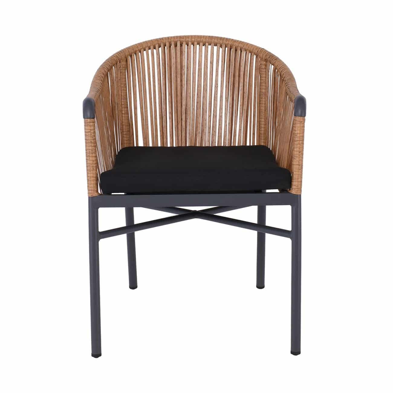 Ε6781 BRAGA Πολυθρόνα Alu Ανθρακί/Wicker Φυσικό/Μαξιλάρι Μαύρο