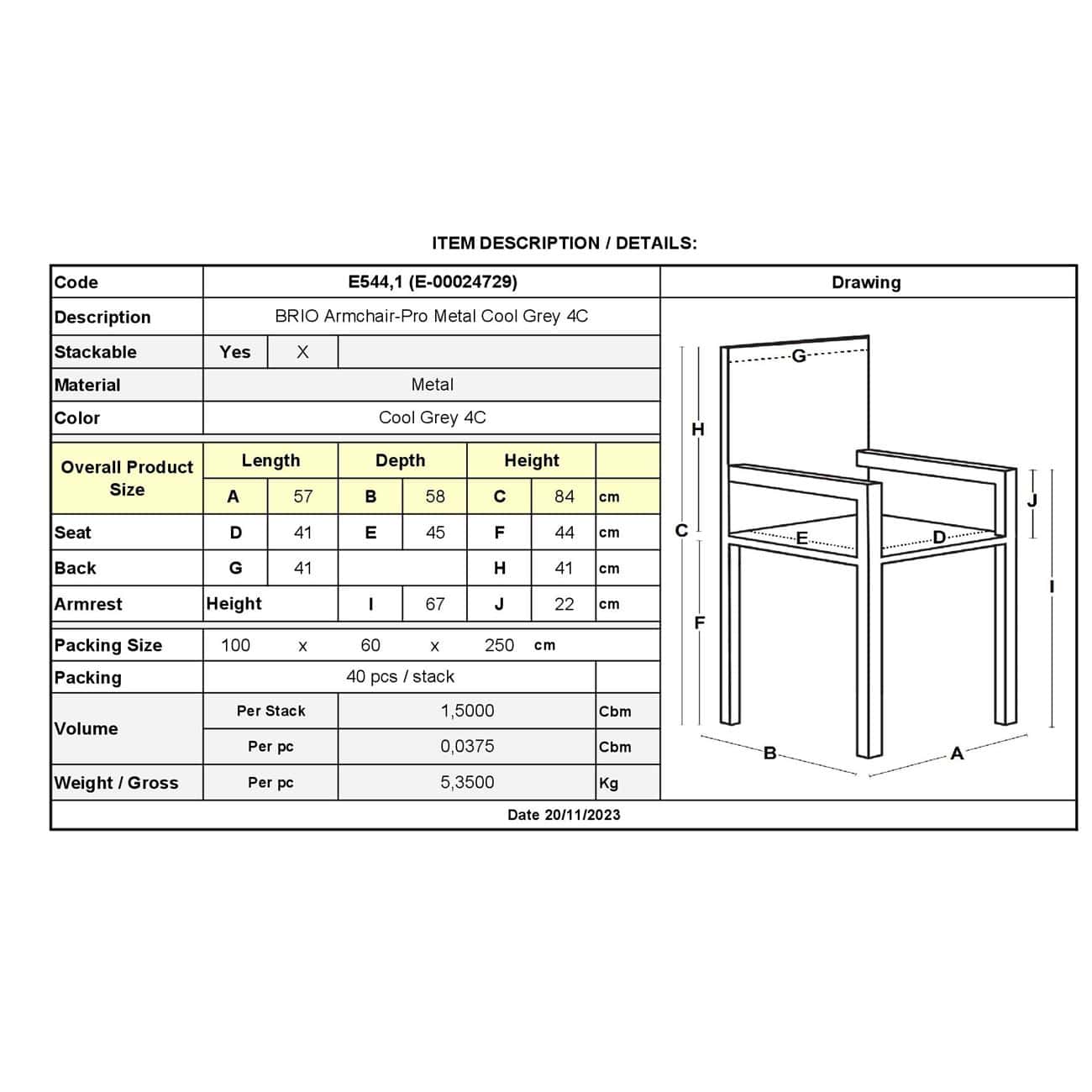 BRIO Πολυθρόνα-Pro Στοιβαζόμενη, Μέταλλο Βαφή Cool Grey 4C 57x58x84cm