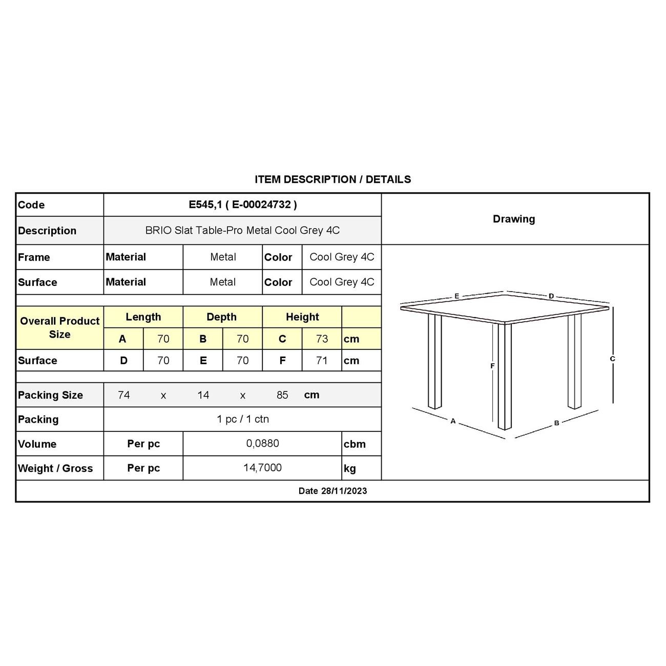 Ε545,1 BRIO Slat Τραπέζι-Pro 70x70cm Μεταλλικό Cool Grey 4C