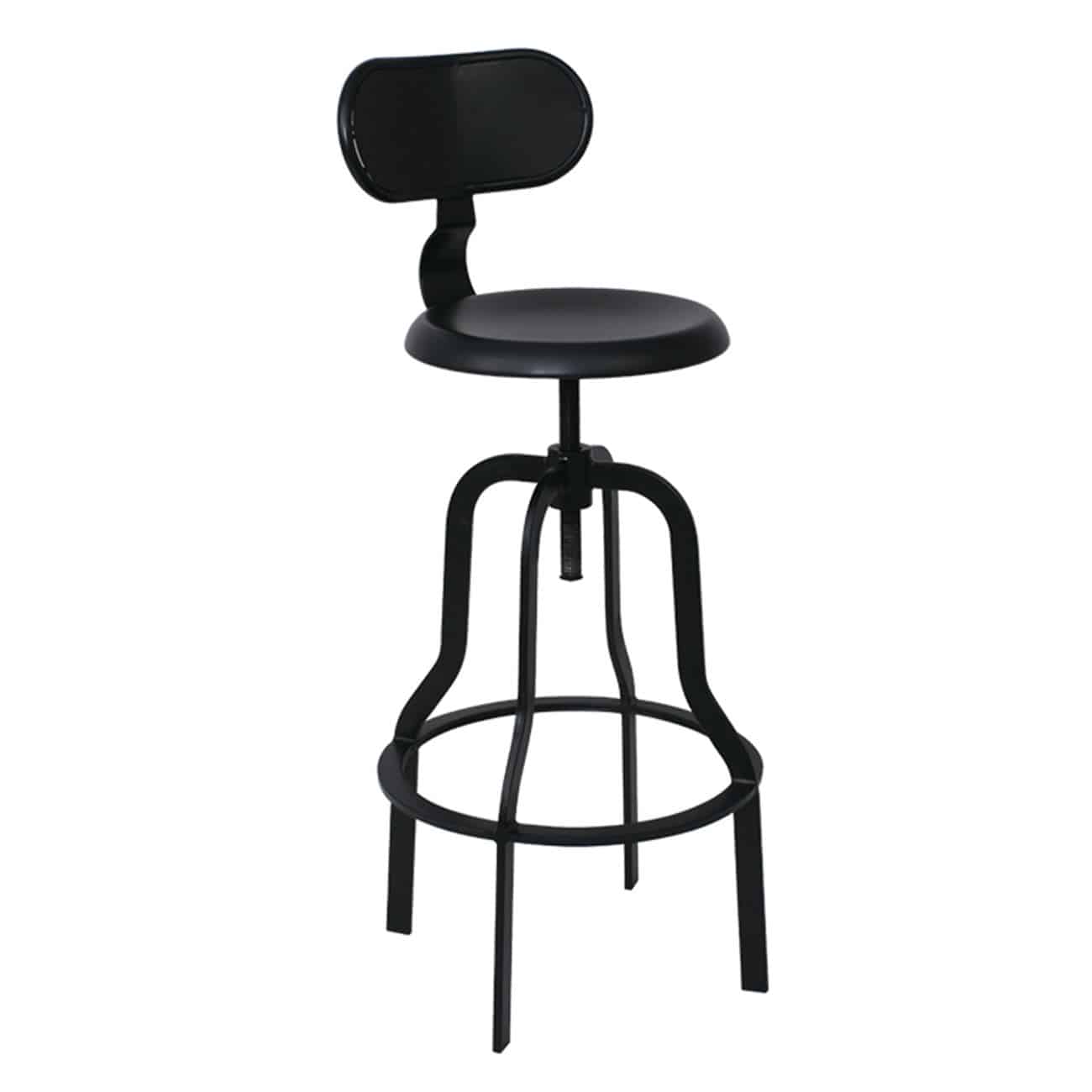 BRUNO Σκαμπό BAR με Πλάτη, Μέταλλο Βαφή Μαύρο, Ύψος Ρυθμιζόμενο, Περιστρεφόμενο 43x50x67/91-82/106cm