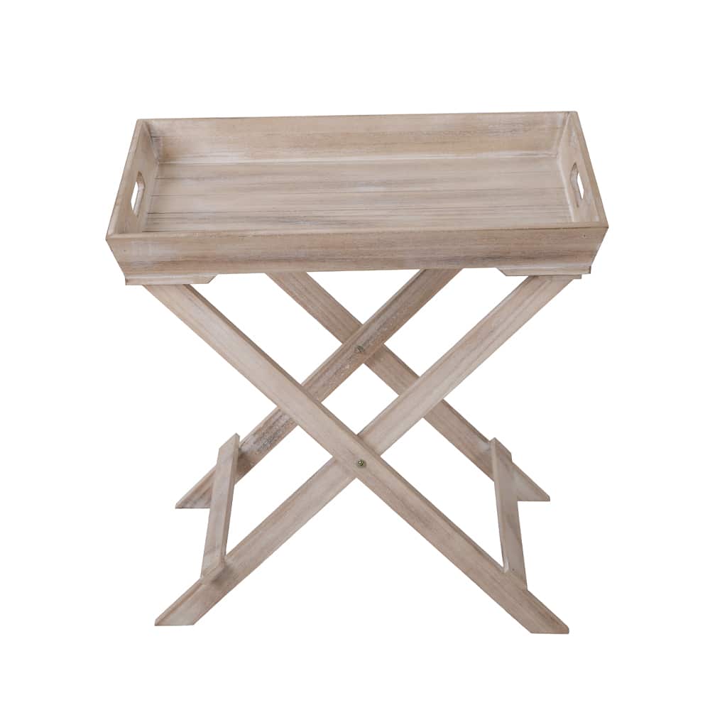 Το βοηθητικό τραπεζάκι Butler σε φυσικό χρώμα ξύλου είναι η ιδανική λύση για όσους αναζητούν λειτουργικότητα και στυλ σε ένα έπιπλο. Κατασκευασμένο από υψηλής ποιότητας υλικά, το τραπεζάκι αυτό προσδίδει μια αίσθηση φυσικής ομορφιάς και ζεστασιάς στον χώρο σας. Η επιφάνεια του τραπεζιού έχει τη μορφή δίσκου σερβιρίσματος, κάνοντας το ιδανικό για να σερβίρετε ποτά, σνακ ή ακόμα και γεύματα με άνεση και στυλ. Ο δίσκος είναι αφαιρούμενος και διαθέτει χερούλια για εύκολη μεταφορά, επιτρέποντάς σας να τον χρησιμοποιείτε και ξεχωριστά από τη βάση. Η βάση του τραπεζιού είναι σχεδιασμένη με έναν πρακτικό μηχανισμό που επιτρέπει την εύκολη αναδίπλωση και αποθήκευση όταν δεν το χρειάζεστε. Η σταθερότητα και η αντοχή της βάσης εξασφαλίζουν την ασφαλή χρήση του τραπεζιού σε διάφορους χώρους του σπιτιού, από το σαλόνι μέχρι τον κήπο.