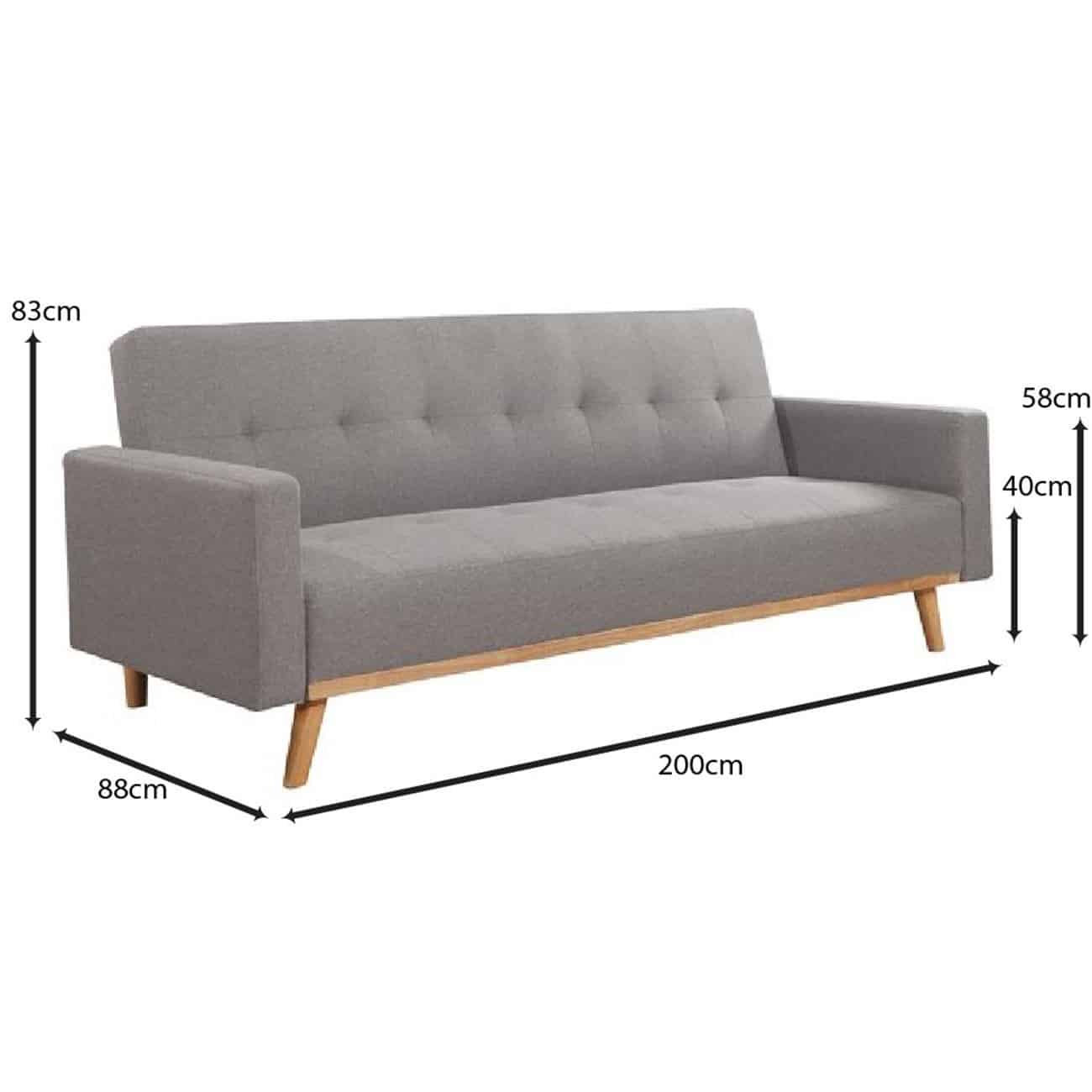 CARLOS Καναπές – Κρεβάτι Σαλονιού Καθιστικού, Ύφασμα Ανοιχτό Γκρι 200x88x83cm Bed:180x109x40cm