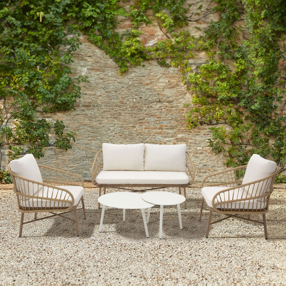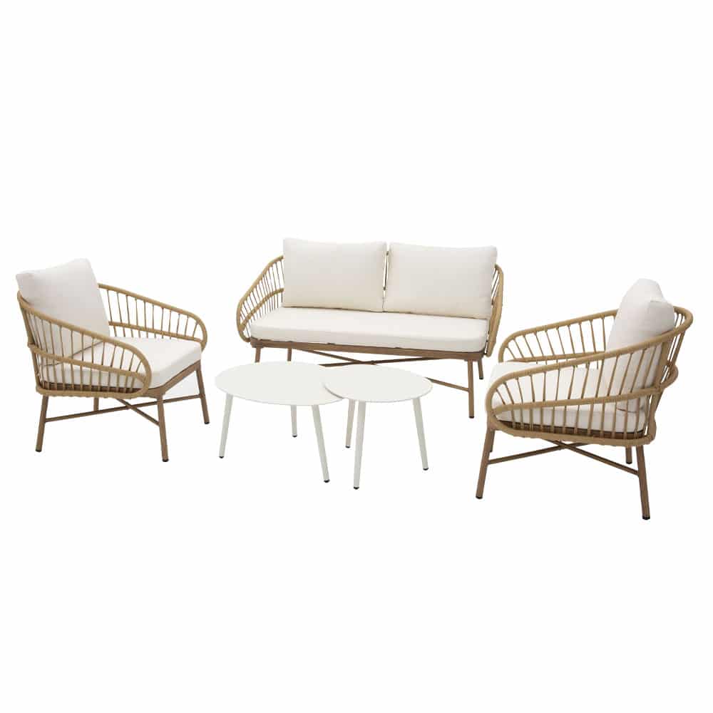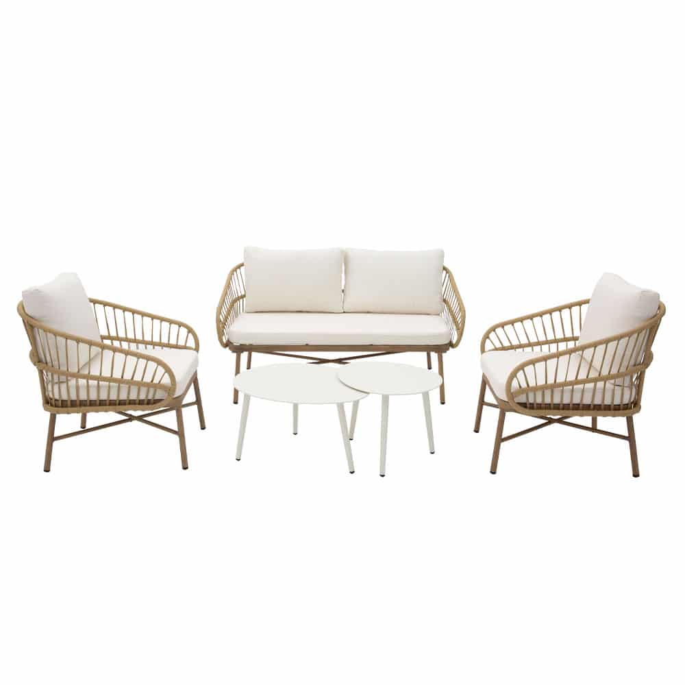 Το σετ σαλονιού Cave είναι ένας συνδυασμός εκλεπτυσμένου σχεδιασμού και απόλυτης άνεσης, ιδανικός για κάθε εξωτερικό ή εσωτερικό χώρο. Η κατασκευή του από σκελετό αλουμινίου με ηλεκτροστατική βαφή προσφέρει εξαιρετική αντοχή στις καιρικές συνθήκες, ενώ το συνθετικό rattan αποπνέει φυσική κομψότητα και διαχρονική αισθητική. Το σετ περιλαμβάνει διθέσιο καναπέ, δύο πολυθρόνες και δύο τραπεζάκια σαλονιού, δημιουργώντας μια ολοκληρωμένη σύνθεση για στιγμές χαλάρωσης. Τα μαλακά μπεζ μαξιλάρια προσφέρουν επιπλέον άνεση, ενώ η minimal και κομψή γραμμή του σετ το καθιστά ιδανική επιλογή για σύγχρονους χώρους με στιλ.