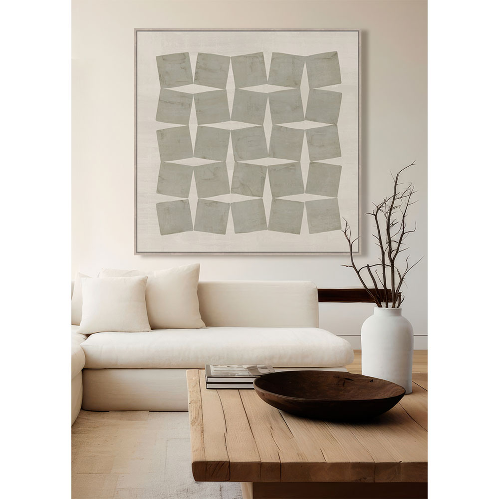 Ο πίνακας CHAINED διαθέτει αφαιρετικό γεωμετρικό pattern σε αποχρώσεις μπεζ και γκρι, αποπνέοντας αίσθηση ισορροπίας και ηρεμίας. Η φυσική ξύλινη κορνίζα αναδεικνύει το έργο και προσδίδει μια διακριτική, σύγχρονη αισθητική. Οι ουδέτεροι τόνοι επιτρέπουν εύκολο συνδυασμό με κάθε διακόσμηση. Με διαστάσεις 80x80x4 cm αποτελεί κομψή επιλογή για minimal χώρους.