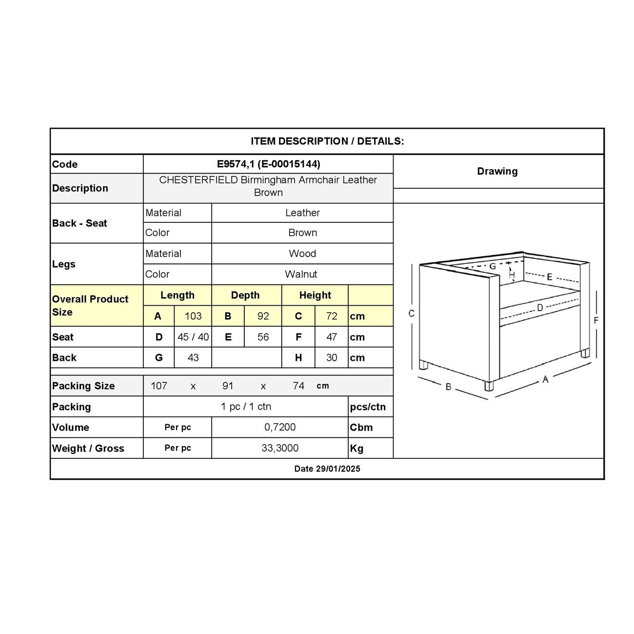 Ε9574,1 – CHESTERFIELD Birmingham Πολυθρόνα Δέρμα Καφέ 103x92x72cm