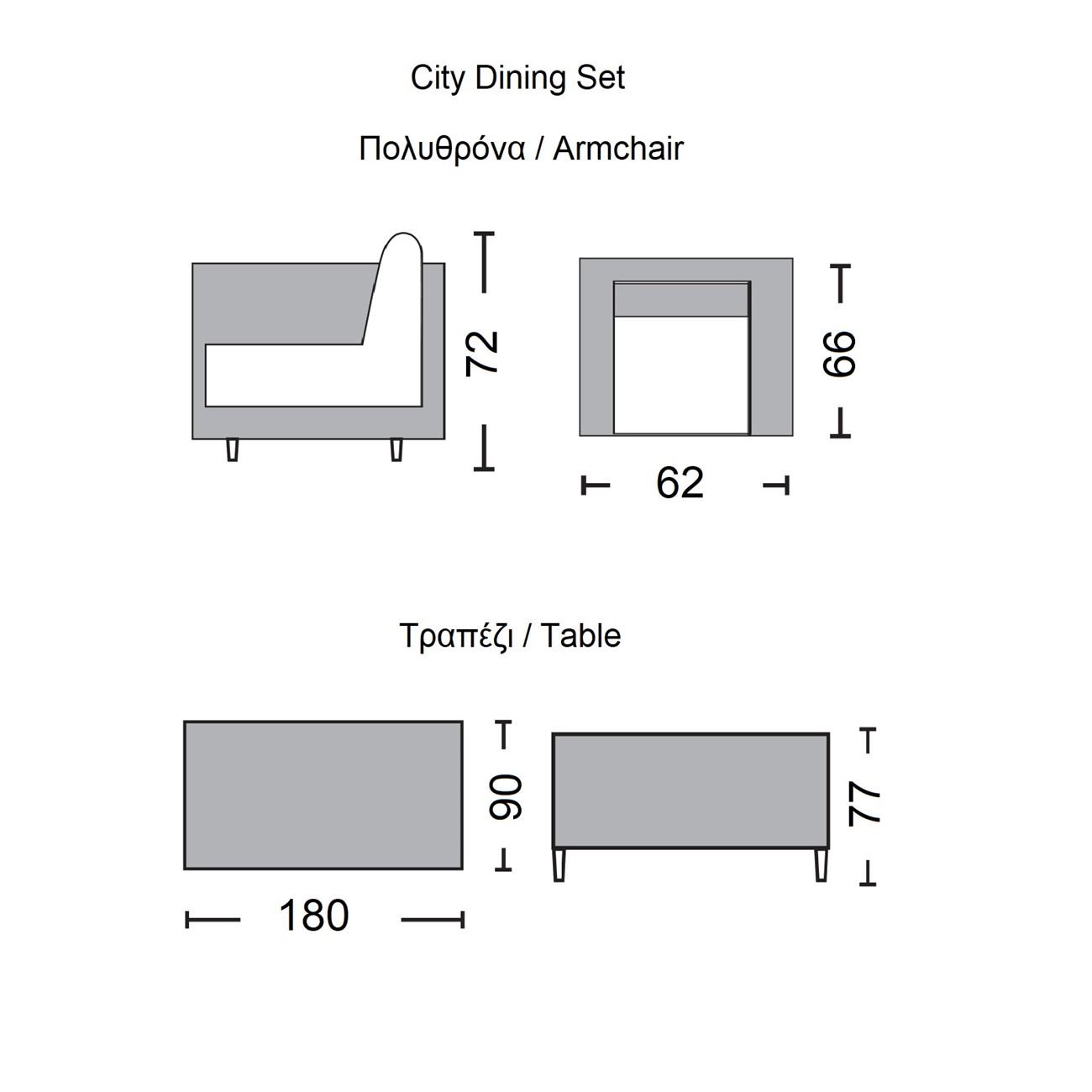 CITY Dining Set Τραπεζαρία Κήπου Βεράντας: Τραπέζι + 6 Πολυθρόνες Alu Ανθρακί – Μπεζ Table:180x90x77 Chair:62x66x72