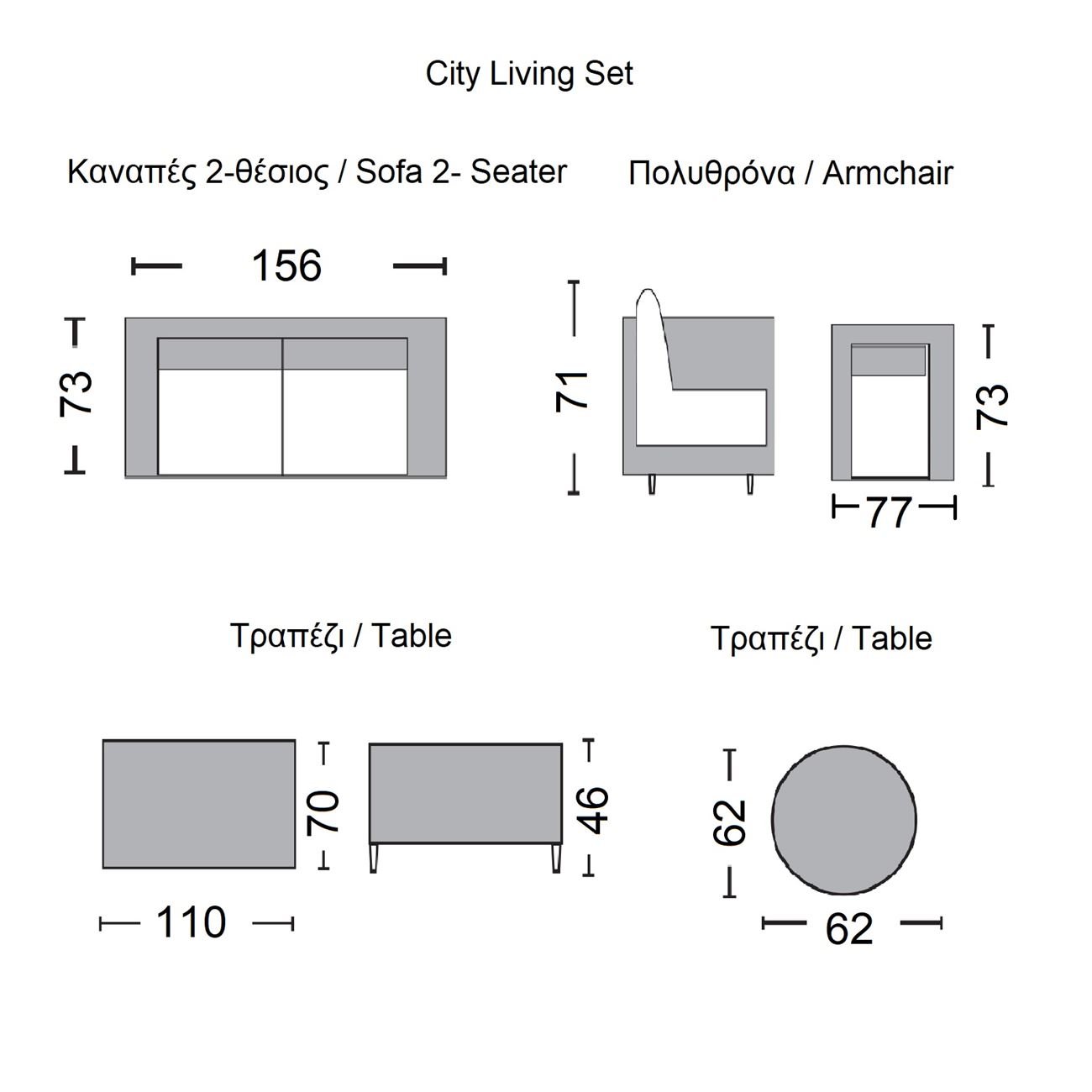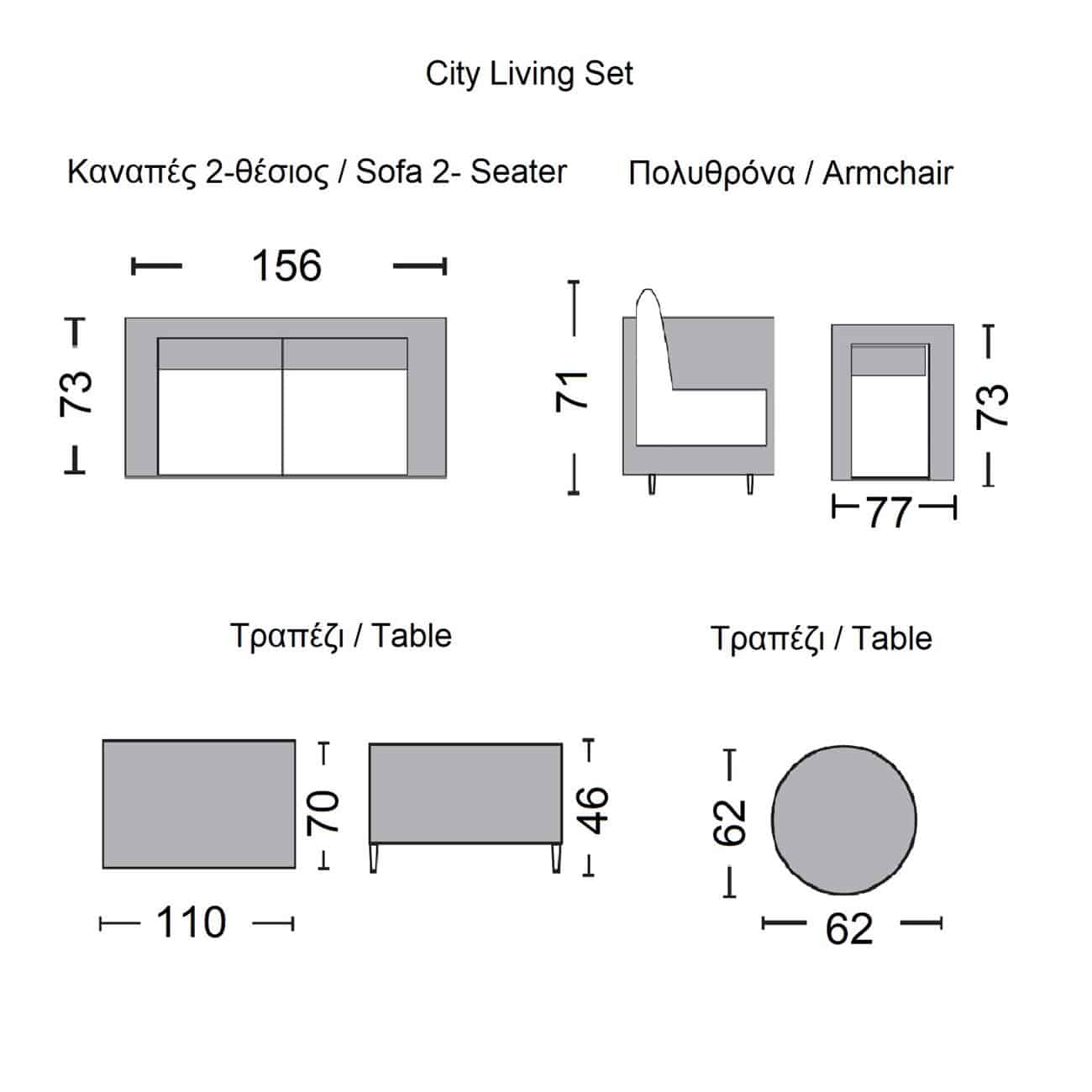 Ε6731 CITY Living Set (Τραπ+2θ+2Πολ+Βοηθ.Τρ) Alu Ανθρακί/Μπεζ