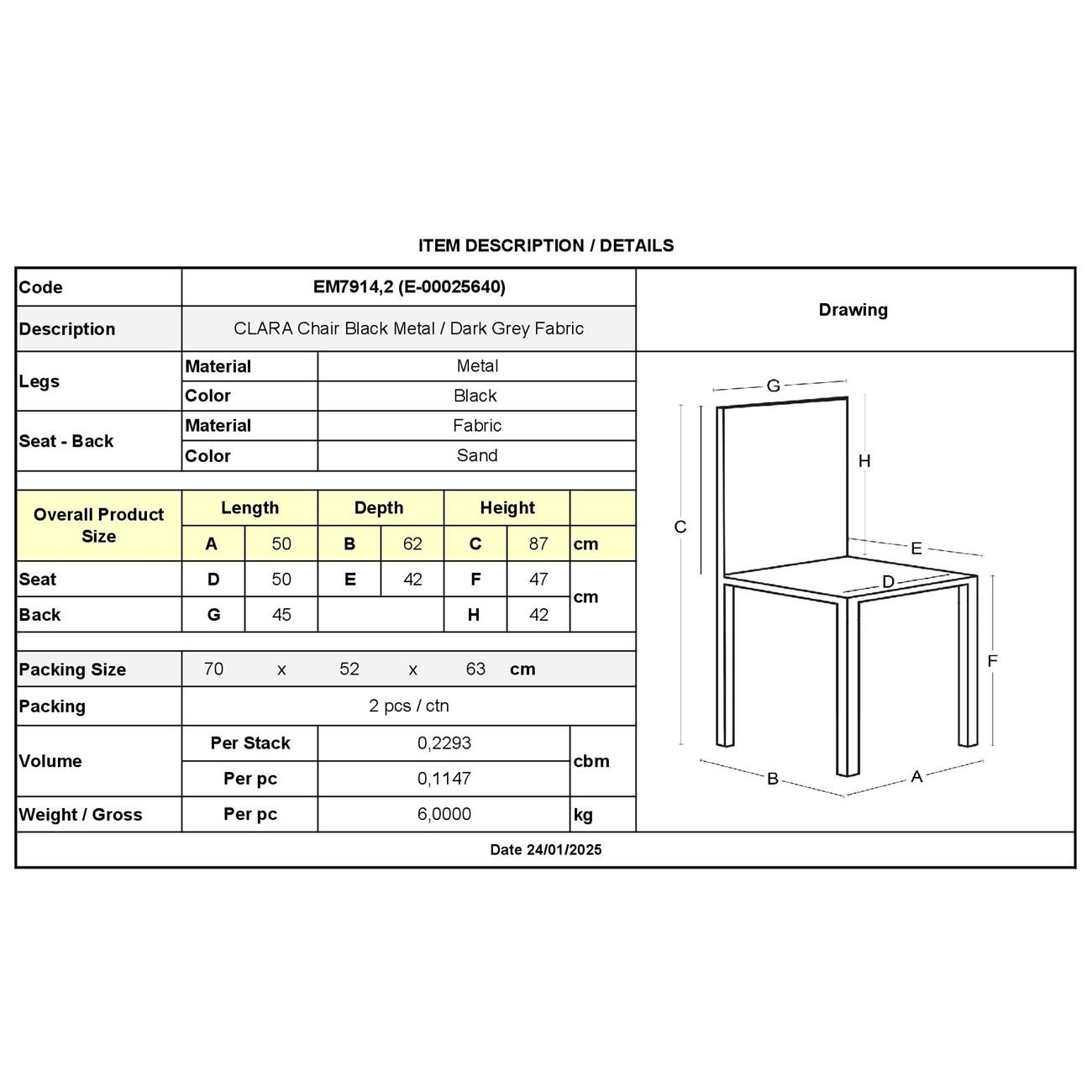 ΕΜ7914,2 CLARA Καρέκλα Μέταλλο Μαύρο/Ύφασμα Sand