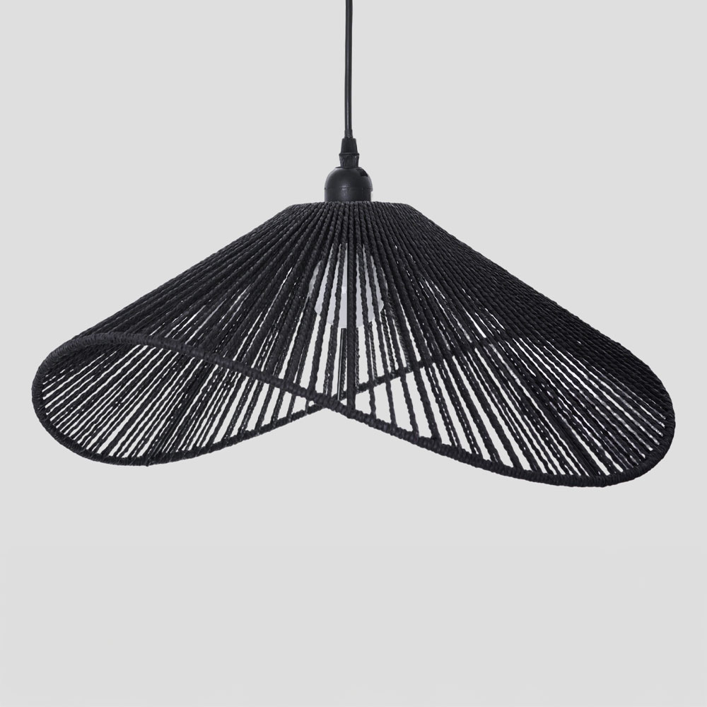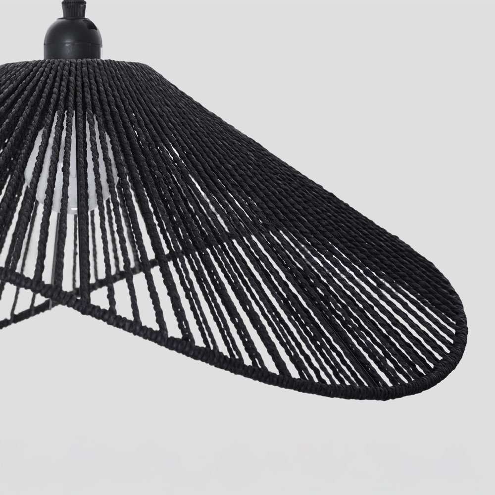 Το CLOVE φωτιστικό οροφής συνδυάζει φυσικά υλικά με μοντέρνο ύφος, δημιουργώντας ατμόσφαιρα ζεστασιάς και χαρακτήρα στον χώρο. Η μοναδική υφή του σχοινιού σε μαύρο τόνο και το διακριτικό χαρτί προσδίδουν μια μποέμ αλλά και σύγχρονη αισθητική. Με διαστάσεις 47.5x21cm, είναι ιδανικό για καθιστικά, τραπεζαρίες, υπνοδωμάτια ή ακόμα και καφέ, boutique και Airbnb διαμερίσματα. Το φυσικό φως που φιλτράρεται μέσα από το χαρτί προσφέρει απαλό, cozy φωτισμό. Ιδανική επιλογή για όσους επιλέγουν statement κομμάτια με οικολογικό χαρακτήρα.