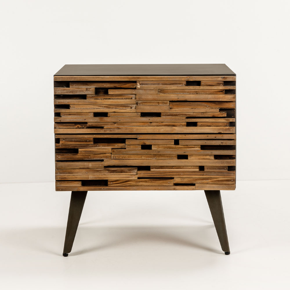 Το κομοδίνο Coast αποτελεί ένα εντυπωσιακό κομμάτι που συνδυάζει τη φυσική αισθητική με τον μοντέρνο σχεδιασμό. Κατασκευασμένο από ξύλο έλατου σε μαύρη και φυσική απόχρωση, προσδίδει κομψότητα και ζεστασιά σε κάθε χώρο. Διαθέτει δύο ευρύχωρα συρτάρια, ιδανικά για την αποθήκευση αντικειμένων, ενώ τα μαύρα μεταλλικά πόδια ενισχύουν τη σταθερότητά του και προσδίδουν βιομηχανικό ύφος. Ένα μοναδικό έπιπλο που αναδεικνύει την προσωπικότητα κάθε υπνοδωματίου.