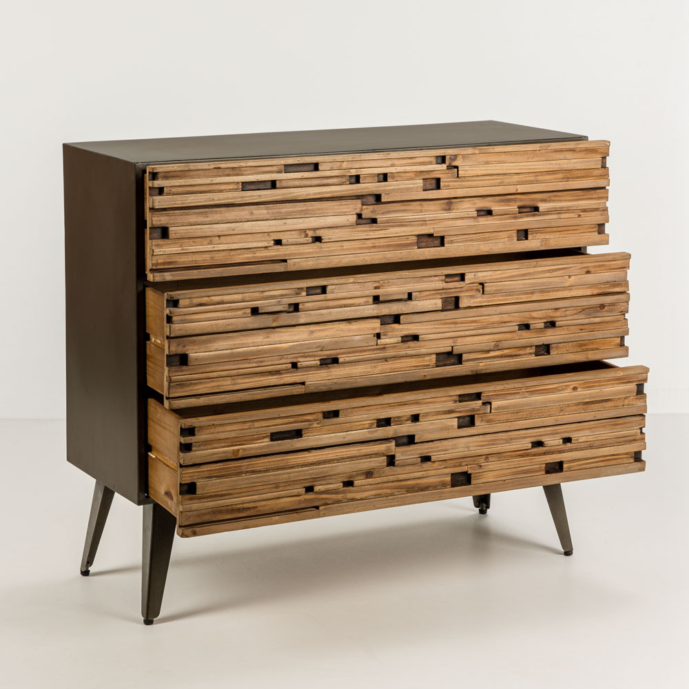 Η συρταριέρα Coast συνδυάζει την αυθεντική φυσική ομορφιά του ξύλου ελάτου με μοντέρνες γραμμές. Η φυσική της απόχρωση αναδεικνύει τα μοναδικά νερά του ξύλου, προσδίδοντας μια ζεστή και φιλόξενη αίσθηση στον χώρο σας. Διαθέτει τρία ευρύχωρα συρτάρια για πρακτική αποθήκευση και μαύρα μεταλλικά πόδια που προσφέρουν σταθερότητα και μοντέρνο χαρακτήρα. Ιδανική για να προσθέσει στυλ και λειτουργικότητα σε κάθε χώρο.