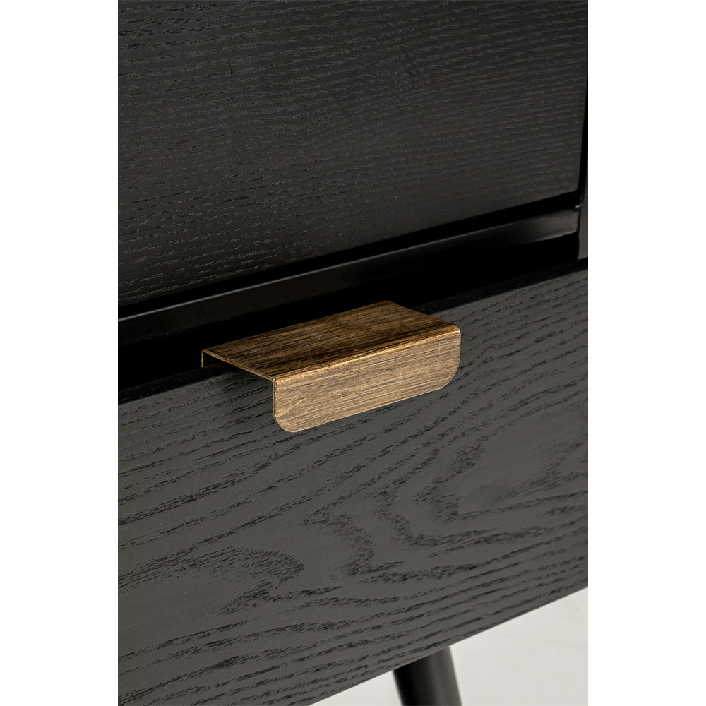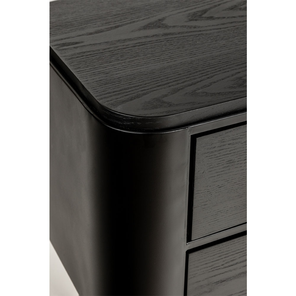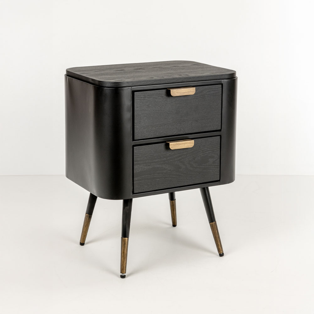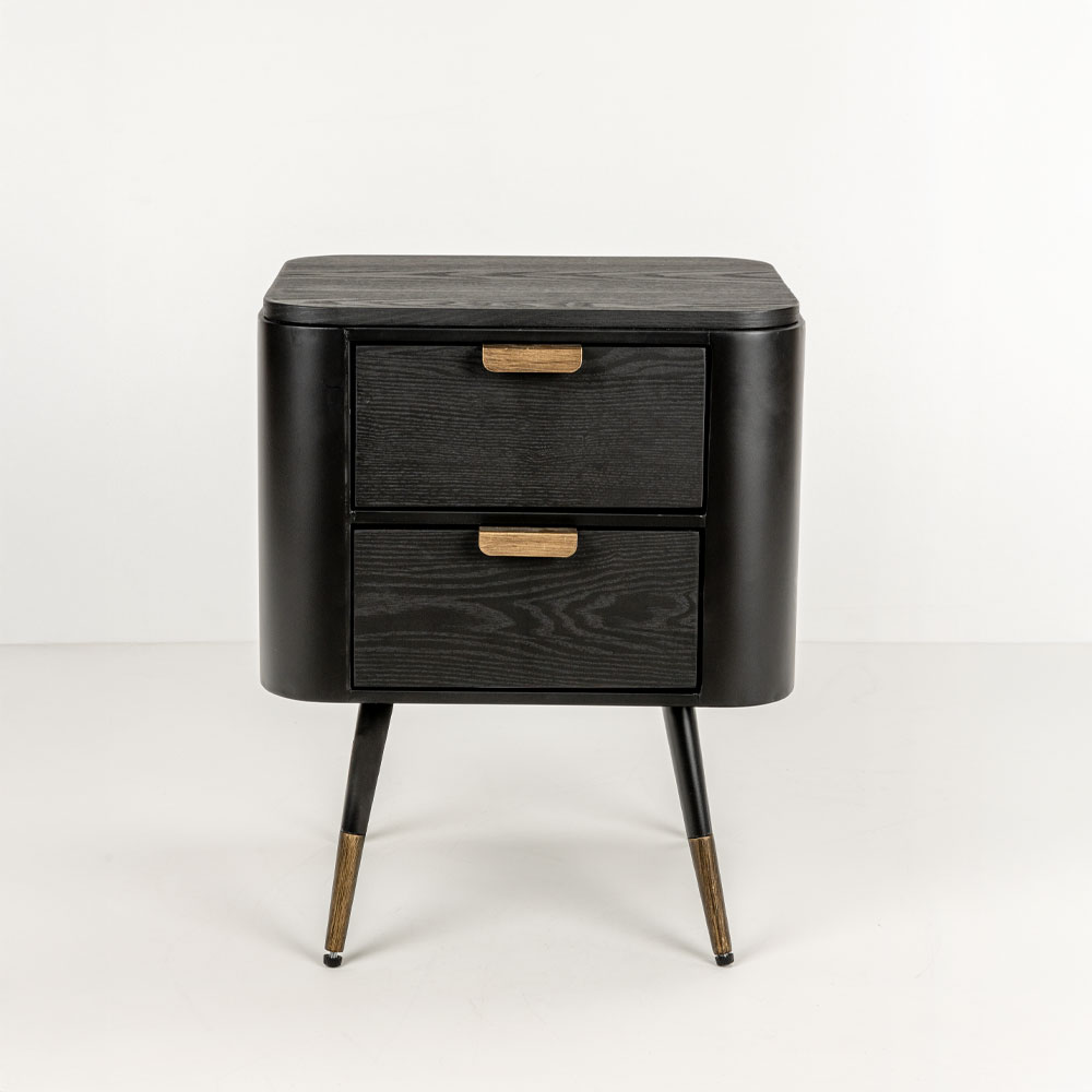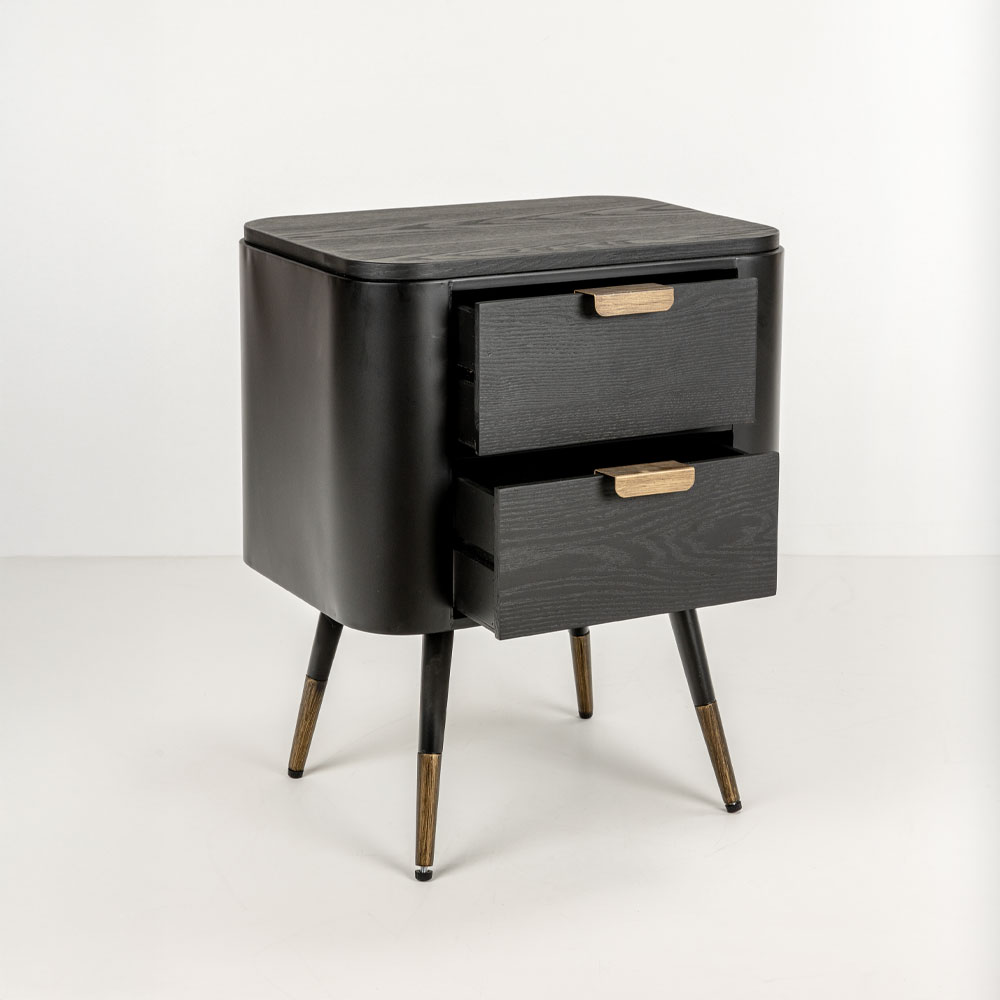 Το κομοδίνο Colombo αποπνέει πολυτέλεια και φινέτσα, ιδανικό για να αναβαθμίσει τη διακόσμηση κάθε χώρου. Ο σκελετός του είναι κατασκευασμένος από ξύλο ελάτου με επένδυση καπλαμά μελιάς σε κομψή μαύρη απόχρωση. Διαθέτει δύο ευρύχωρα συρτάρια, που προσφέρουν πρακτικότητα, ενώ τα μαύρα μεταλλικά πόδια με χρυσές λεπτομέρειες προσδίδουν μία διακριτική λάμψη και σταθερότητα. Ένα μοναδικό κομμάτι για όσους αναζητούν μοντέρνο αλλά και εκλεπτυσμένο στιλ.