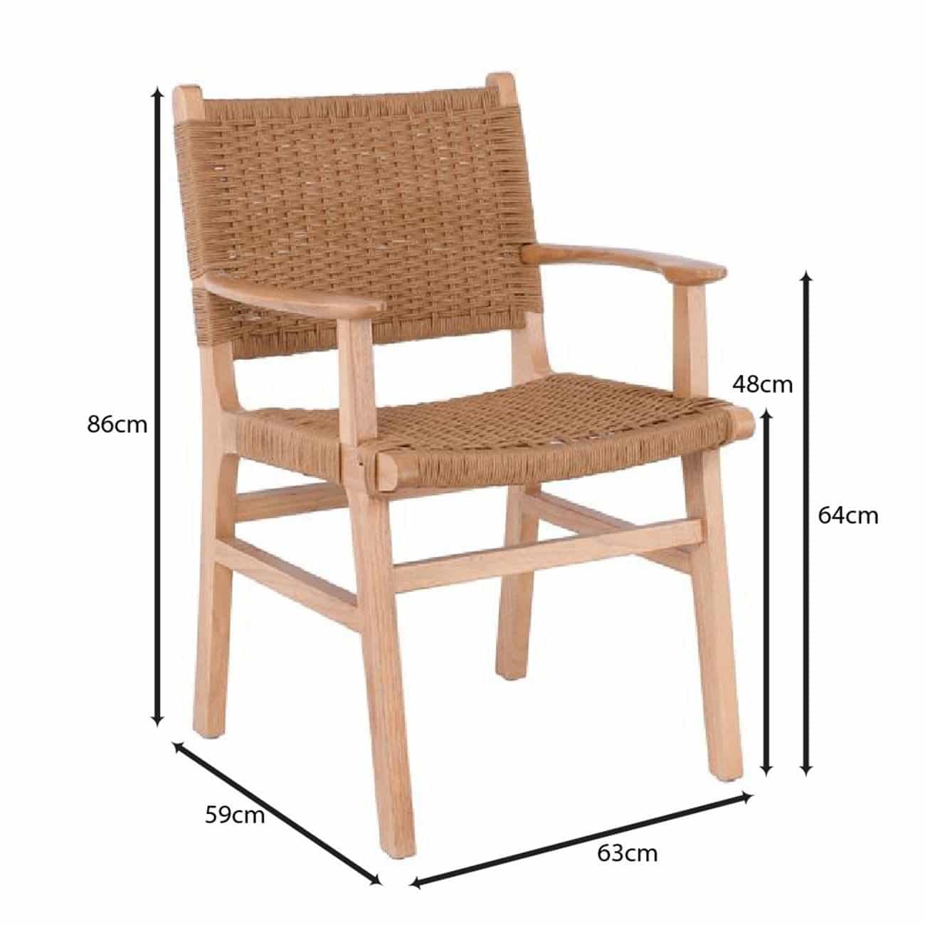 COMO Πολυθρόνα Τραπεζαρίας Φυσικό, Κάθισμα Paper Rope 63x59x86cm