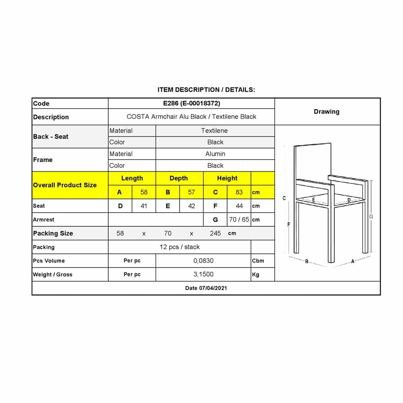 COSTA Πολυθρόνα Dining Αλουμινίου, Απόχρωση Μαύρο Textilene Μαύρο (Ε-00022762)
