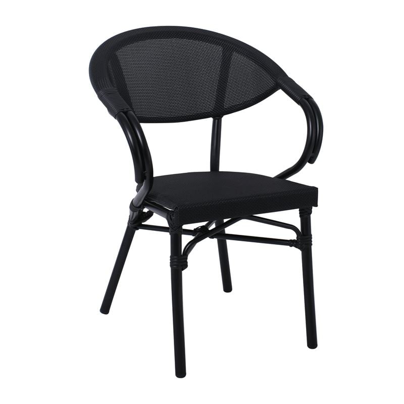 COSTA Πολυθρόνα Dining Αλουμινίου, Απόχρωση Μαύρο Textilene Μαύρο 58x57x83cm