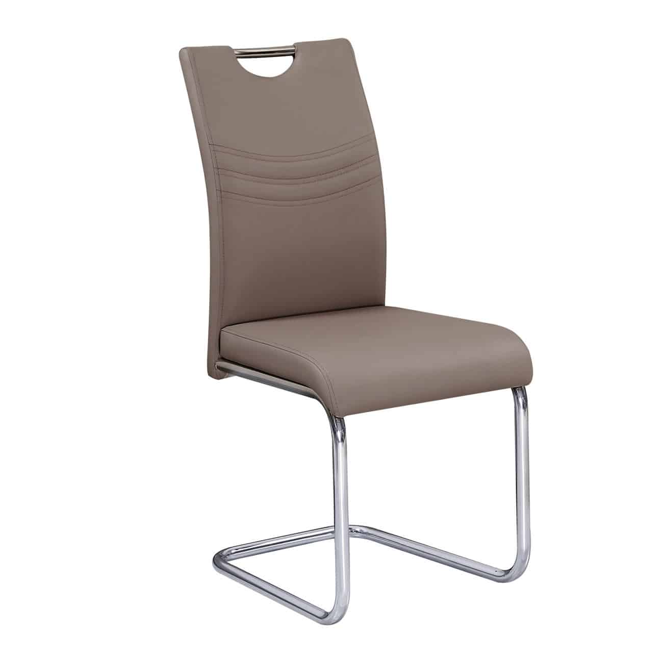 CROFT Καρέκλα Τραπεζαρίας – Κουζίνας, Μέταλλο Χρώμιο, PU Cappuccino 43x58x102cm