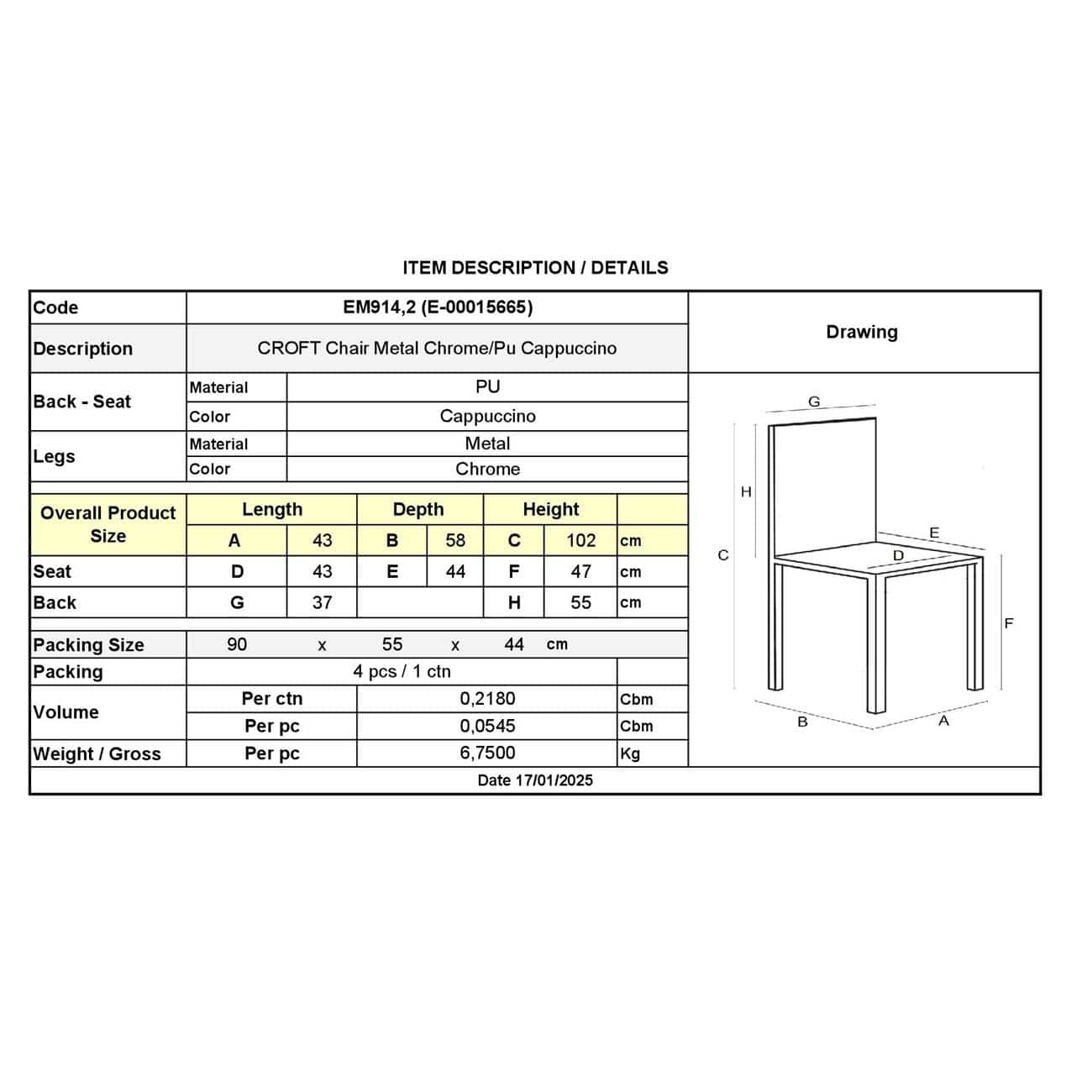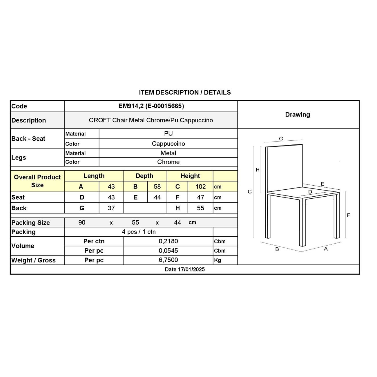 ΕΜ914,2 CROFT Καρέκλα Χρώμιο/PU Cappuccino