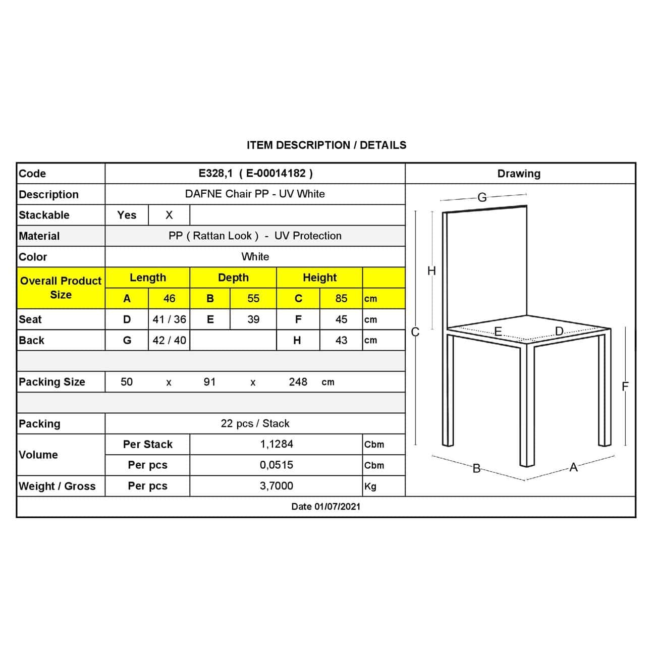 Ε328,1 DAFNE Καρέκλα PP-UV Άσπρο (Rattan Look) Στοιβαζόμενη