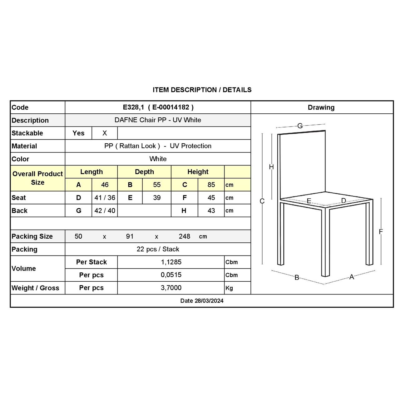 DAFNE Καρέκλα Τραπεζαρίας Κήπου Στοιβαζόμενη, PP Rattan Look UV Protection, Άσπρο (Ε-00014182)