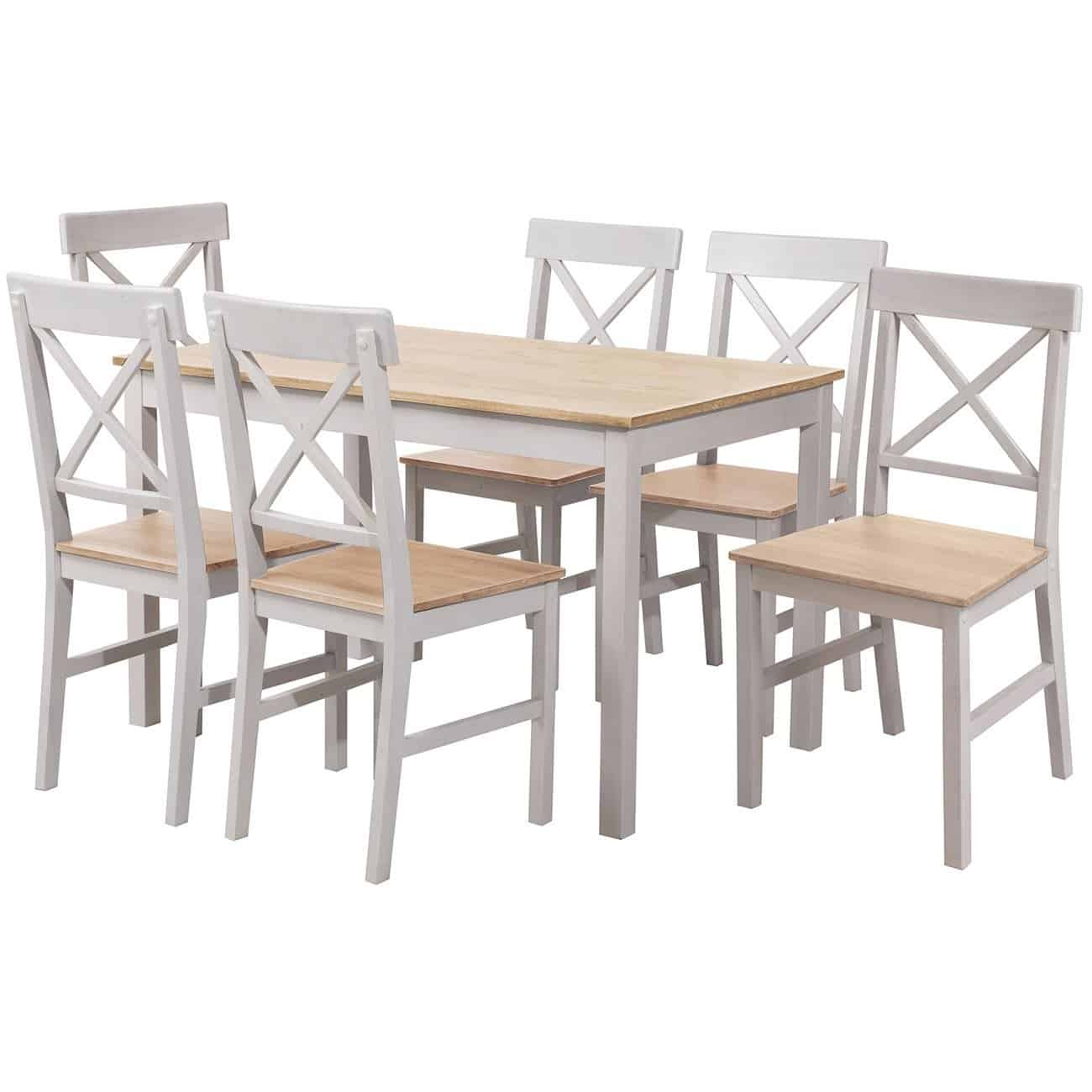 DAILY Set Τραπεζαρία Ξύλινη Σαλονιού – Κουζίνας: Τραπέζι + 6 Καρέκλες / Άσπρο – Φυσικό (Ε-00024329)