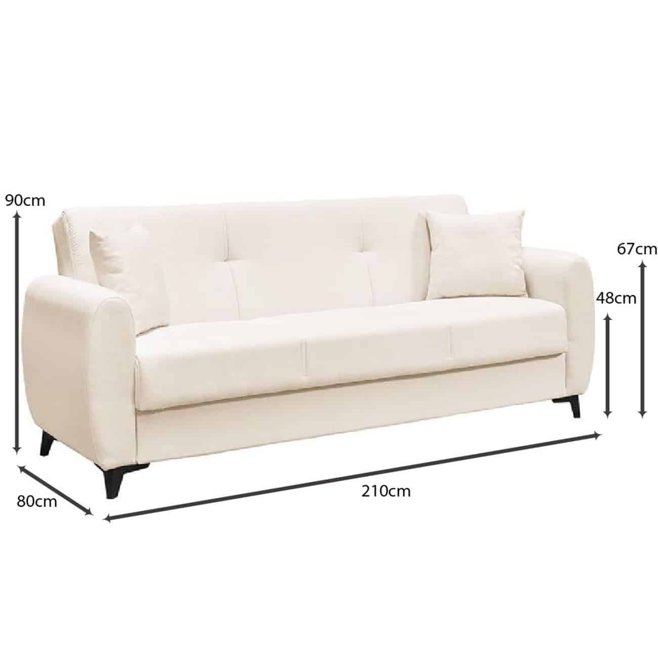DARIO Καναπές – Κρεβάτι με Αποθηκευτικό Χώρο, 3Θέσιος Ύφασμα Εκρού Sofa:210x80x90 Bed:180x100cm