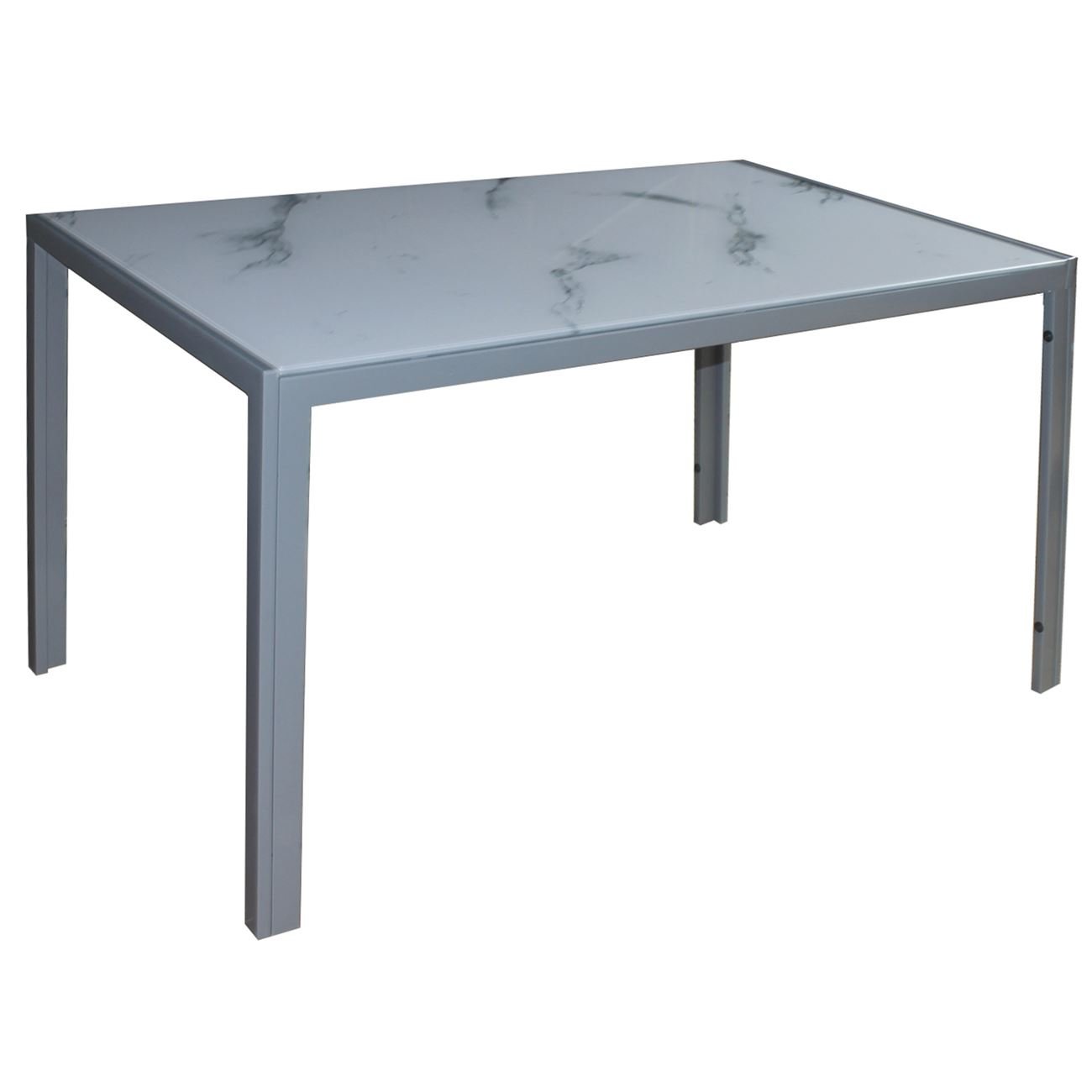 DEGO Τραπέζι Τραπεζαρίας – Κουζίνας, Μέταλλο Βαφή Γκρι, Γυαλί Άσπρο Μάρμαρο (Ε-00024184)