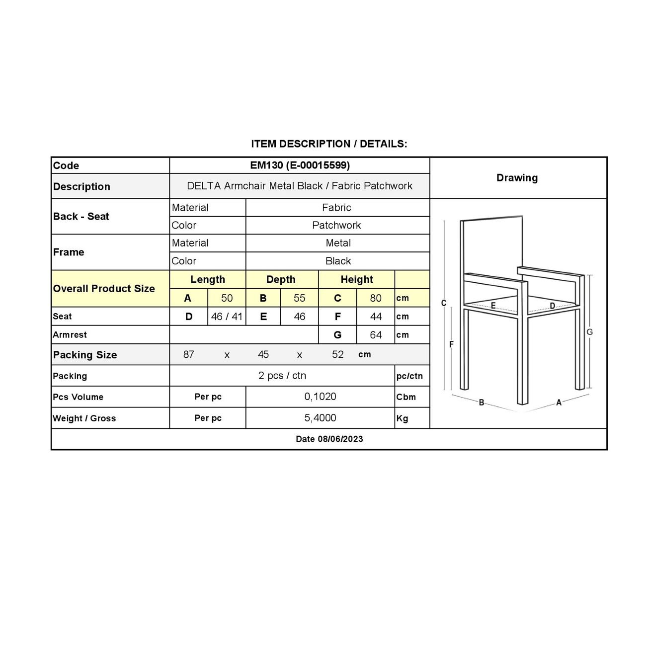 DELTA Πολυθρόνα Μέταλλο Βαφή Μαύρο, Ύφασμα Patchwork (Ε-00015599)