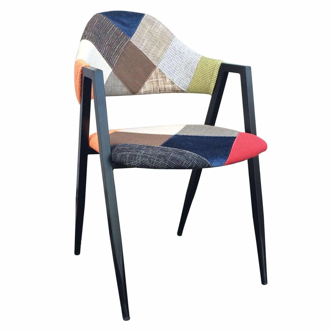 DELTA Πολυθρόνα Μέταλλο Βαφή Μαύρο, Ύφασμα Patchwork 50x55x80cm
