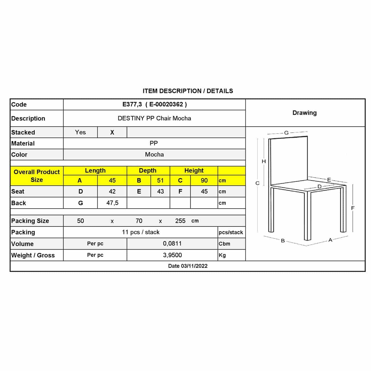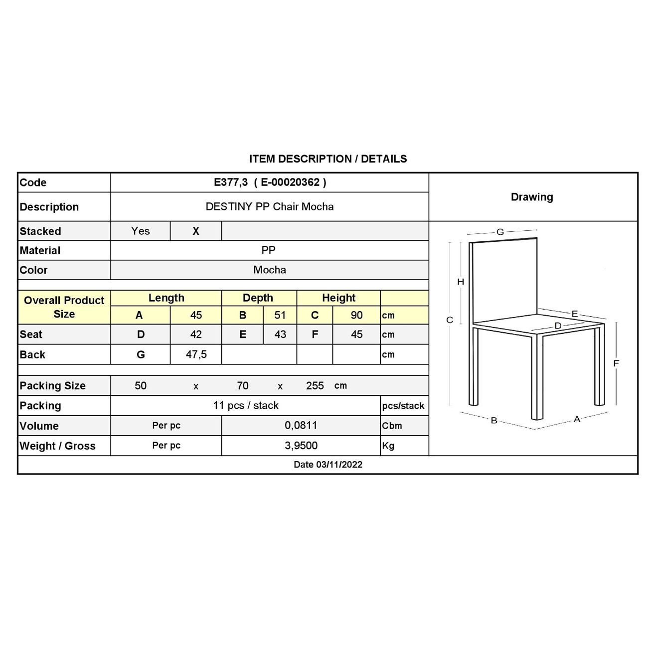Ε377,3 DESTINY PP Καρέκλα Mocha – Στοιβαζόμενη