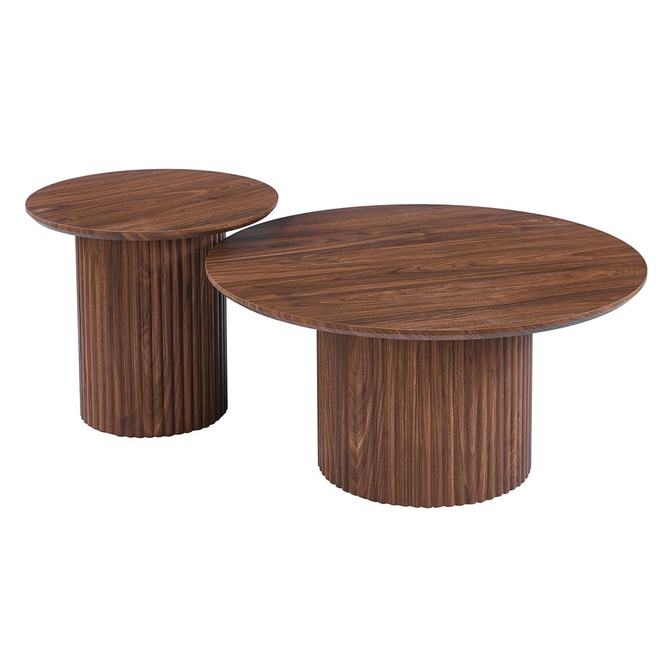 DIAZ Set-2 Τραπεζάκια Σαλονιού-Καθιστικού, ΜDF Απόχρωση Καρυδί Φ.50 H.45cm + Φ.80 H.40cm
