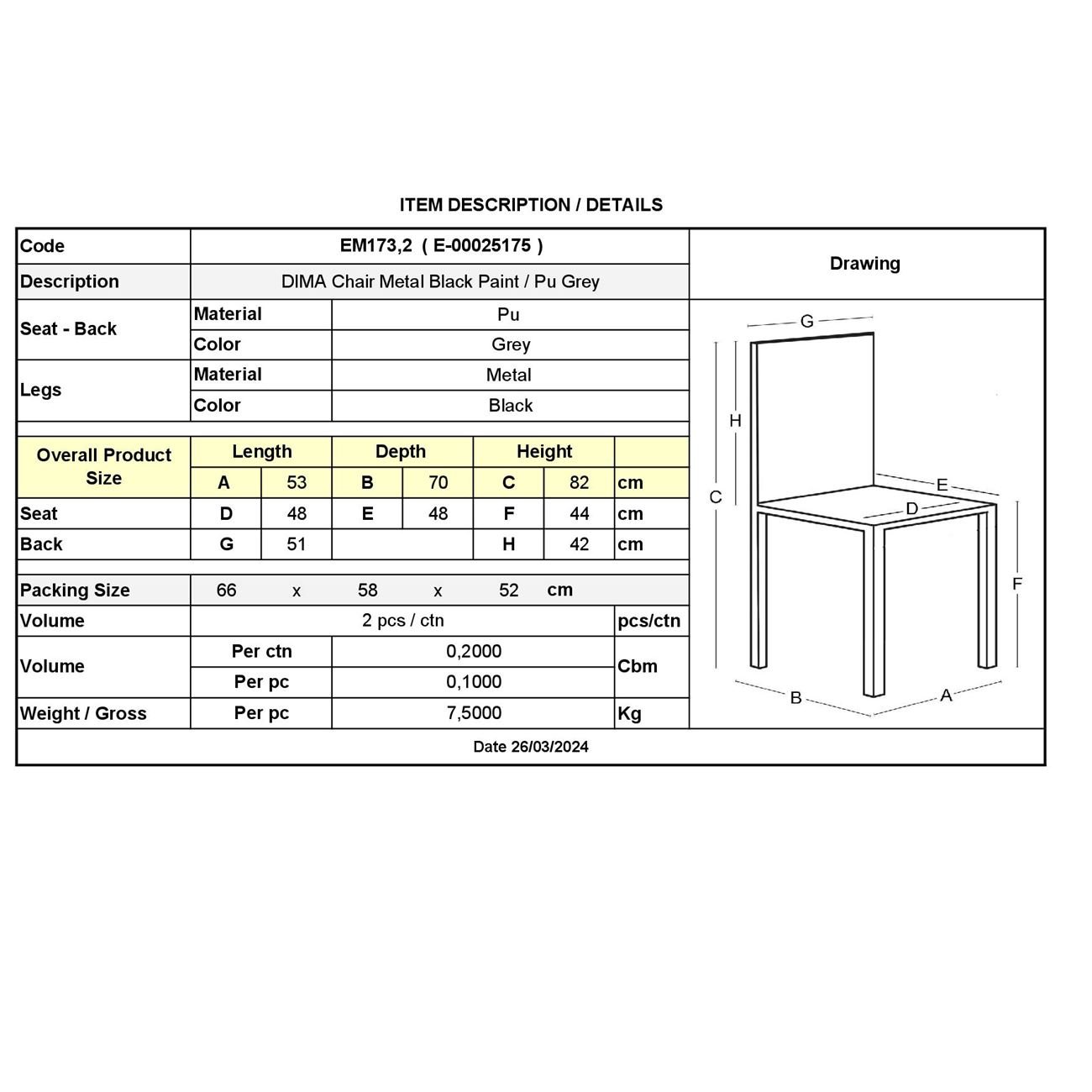 DIMA Καρέκλα Τραπεζαρίας- Κουζίνας, Μέταλλο Βαφή Μαύρο, Pu Γκρι 53x70x82cm