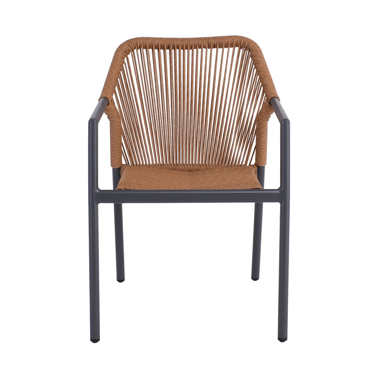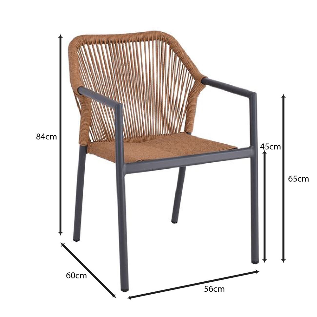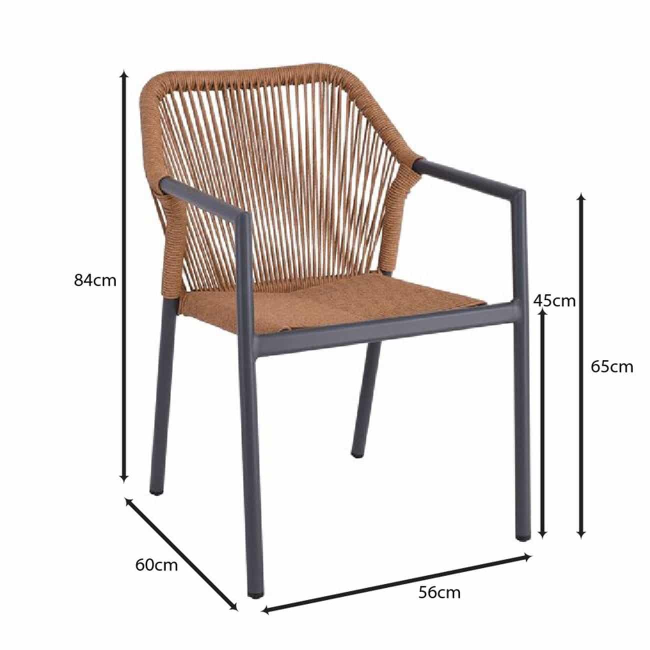 DINA Πολυθρόνα Βεράντας-Κήπου ALU Ανθρακί, Rope Wicker Φυσικό, Στοιβαζόμενη 56x60x84cm