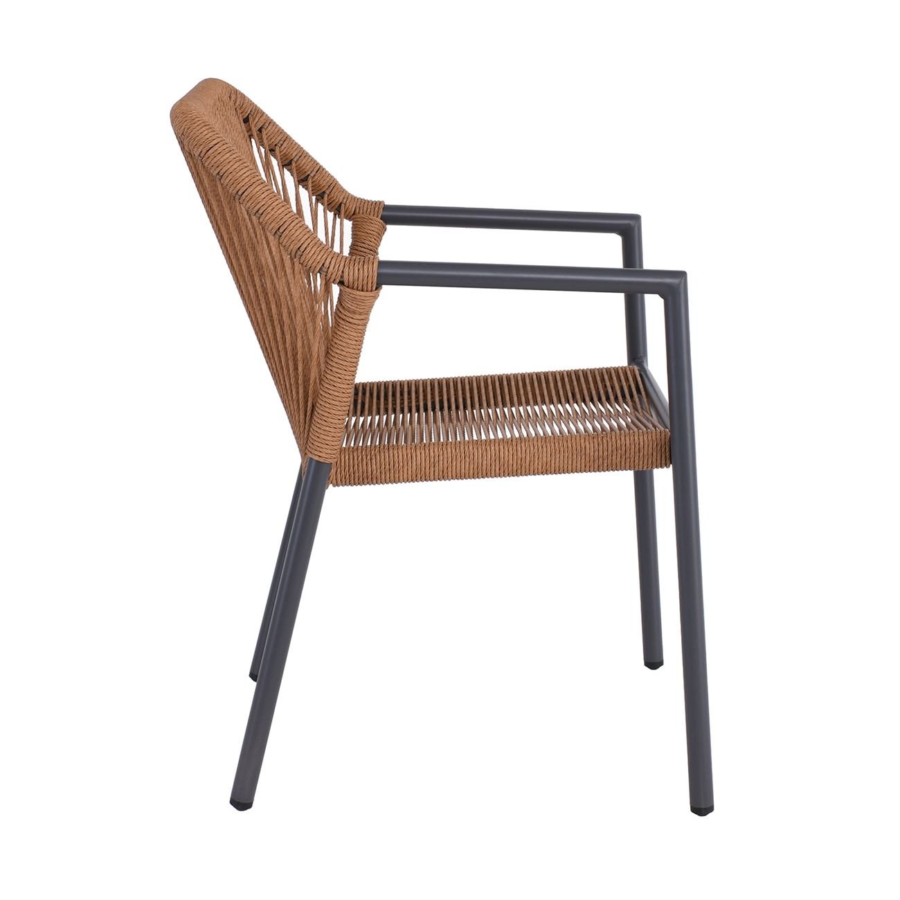 DINA Πολυθρόνα Βεράντας-Κήπου ALU Ανθρακί, Rope Wicker Φυσικό, Στοιβαζόμενη (Ε-00026089)