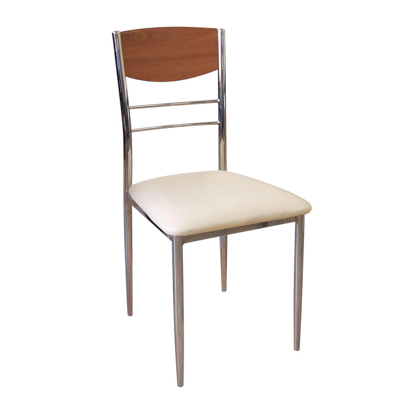 DINO Καρέκλα Τραπεζαρίας Κουζίνας, Μέταλλο Χρώμιο Κερασί, Pvc Εκρού (Ε-00007604)