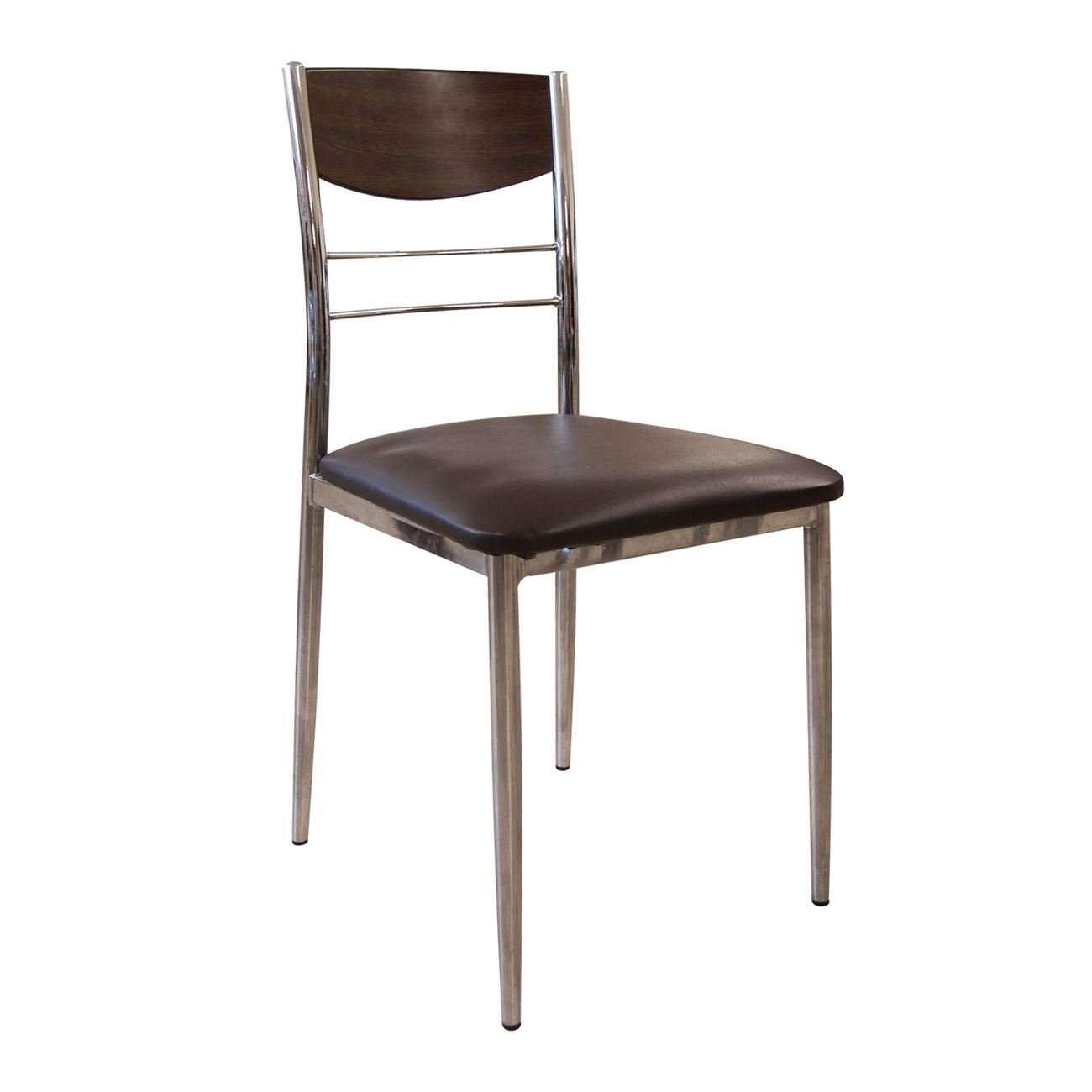 DINO Καρέκλα Τραπεζαρίας Κουζίνας, Μέταλλο Χρώμιο Σκούρο Καρυδί, PVC Καφέ  (Ε-00007603)