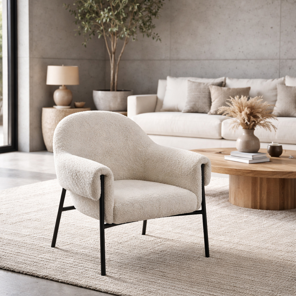 Η πολυθρόνα Doggy, σε μπεζ χρώμα, με απαλό Chenille ύφασμα είναι η ιδανική προσθήκη για έναν μίνιμαλ και μοντέρνο χώρο. Ο κομψός σχεδιασμός με την άνετη επένδυση προσφέρει μια αίσθηση πολυτέλειας και χαλάρωσης. Το μπεζ ύφασμα της πολυθρόνας προσδίδει φρεσκάδα και φωτεινότητα. Τα λεπτά και κομψά μαύρα μεταλλικά πόδια προσθέτουν μια μοντέρνα και στιβαρή αίσθηση, ενώ υποστηρίζουν άψογα το αναπαυτικό κάθισμα. Αυτό το μοναδικό κομμάτι θα προσθέσει μια αίσθηση κομψότητας σε οποιοδήποτε δωμάτιο, δημιουργώντας έναν φιλόξενο και πολυτελή χώρο.