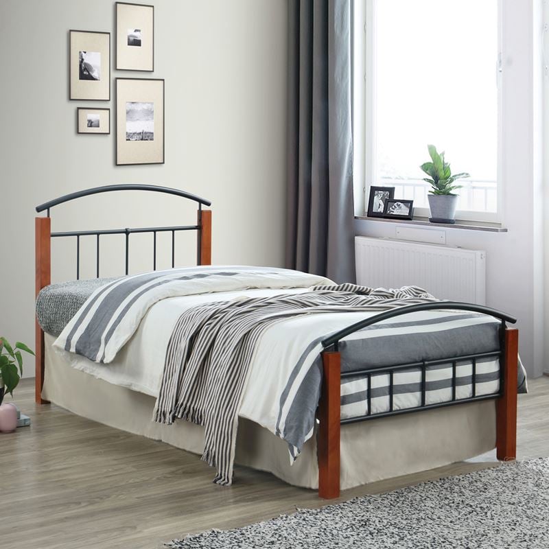 Ε8300 DOKA Κρεβάτι (για στρώμα 90x200cm) Μεταλ.Μαύρο/Ξύλο Καρυδί