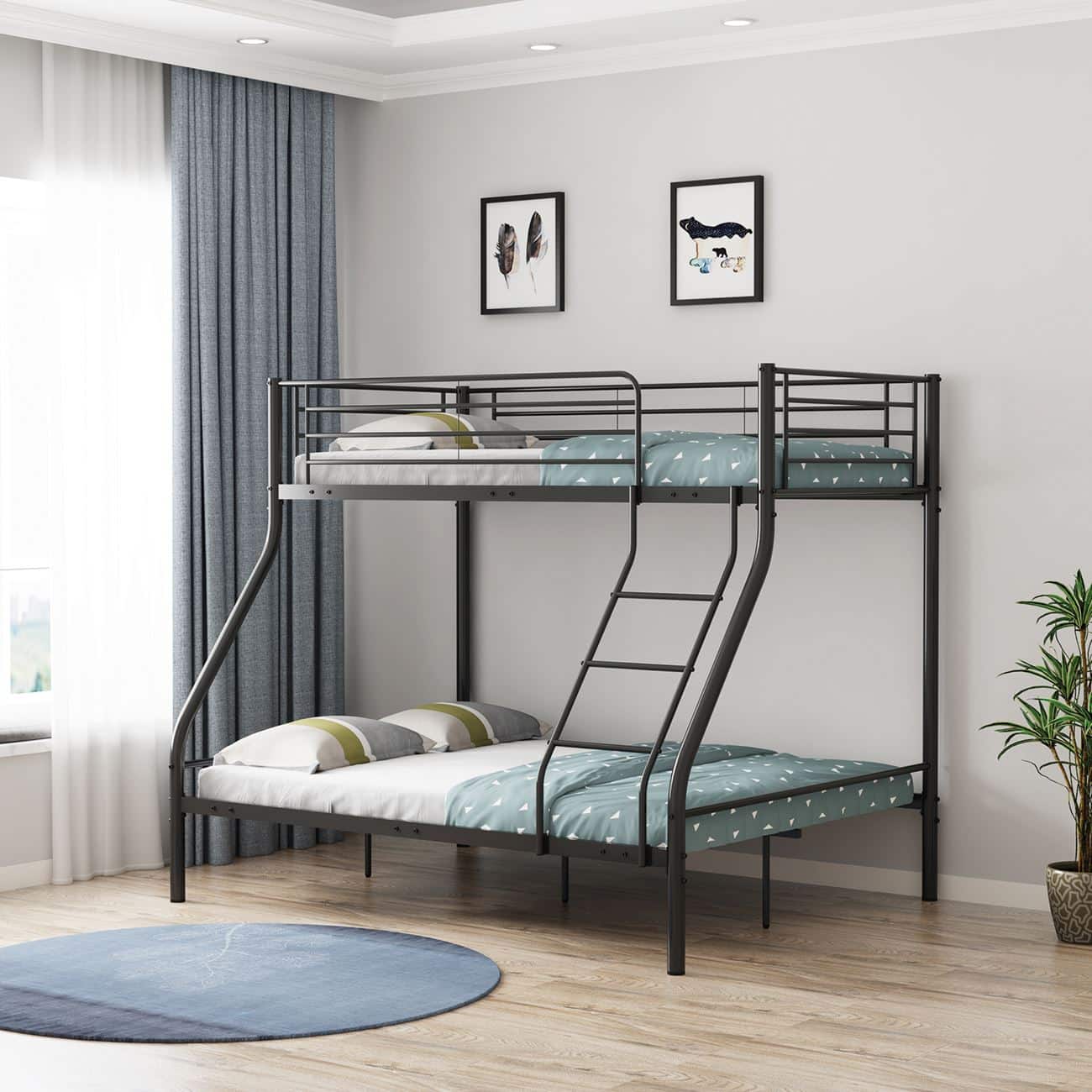 DOUBLE Κρεβάτι Κουκέτα Μέταλλο Βαφή Μαύρο, Για στρώματα 140×190+90x190cm (Ε-00025037)