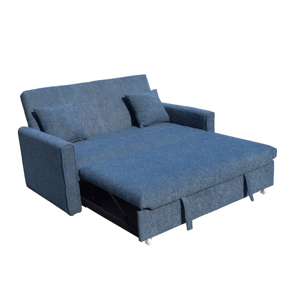Ο διθέσιος καναπές κρεβάτι Dual, σε μπλε χρώμα, με ύφασμα μπουκλέ είναι η ιδανική λύση για όσους επιθυμούν να συνδυάσουν την άνεση με τη λειτουργικότητα. Το πλούσιο μπουκλέ ύφασμα προσφέρει μια μοναδική υφή και πολυτελή αίσθηση, καθιστώντας τον καναπέ έναν καλαίσθητο πόλο έλξης στον χώρο σας. Η ευελιξία του καναπέ κρεβάτι Dual σας επιτρέπει να τον μετατρέψετε εύκολα και γρήγορα σε ένα άνετο κρεβάτι για εσάς ή τους φιλοξενούμενούς σας, παρέχοντας έτσι διπλή χρησιμότητα. Με τον μοντέρνο σχεδιασμό και το κομψό μπλε χρώμα του, αυτός ο καναπές κρεβάτι είναι ιδανικός για κάθε σαλόνι, γραφείο ή δωμάτιο επισκεπτών, προσθέτοντας μια αίσθηση φρεσκάδας και στυλ. Απολαύστε την απόλυτη άνεση και πρακτικότητα.
